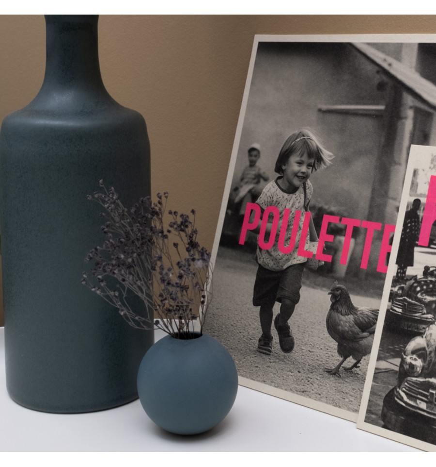 L'affiche "Poulette" est sérigraphiée de manière artisanale à Lille sur du carton bois 100% issu de matériaux recyclés et certifié PEFC.