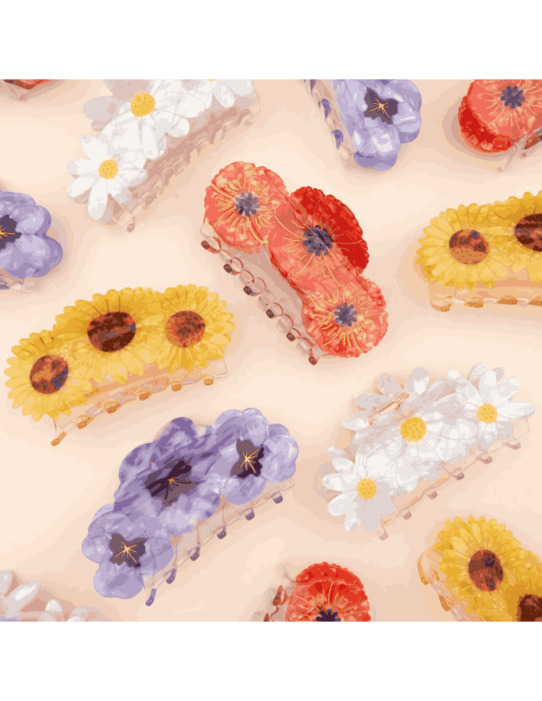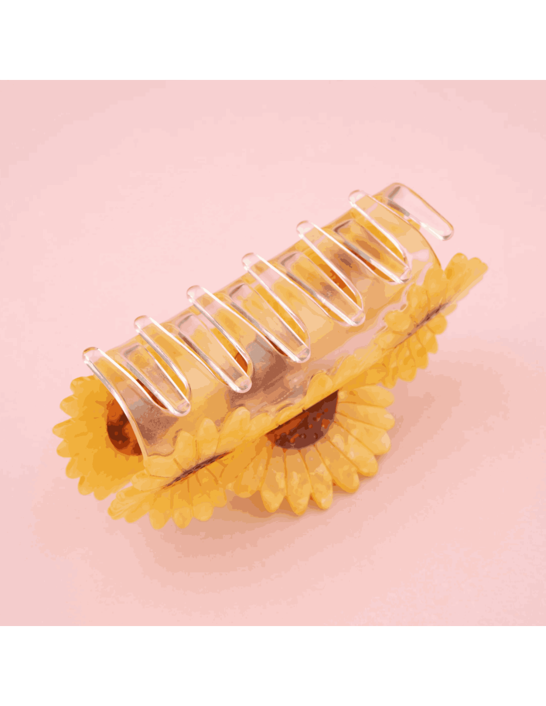 Joliment colorée de 3 grands tournesols nacrés jaunes et marrons, cette pince avec ces grandes dents permet de tenir tous les cheveux même les plus rebelles !