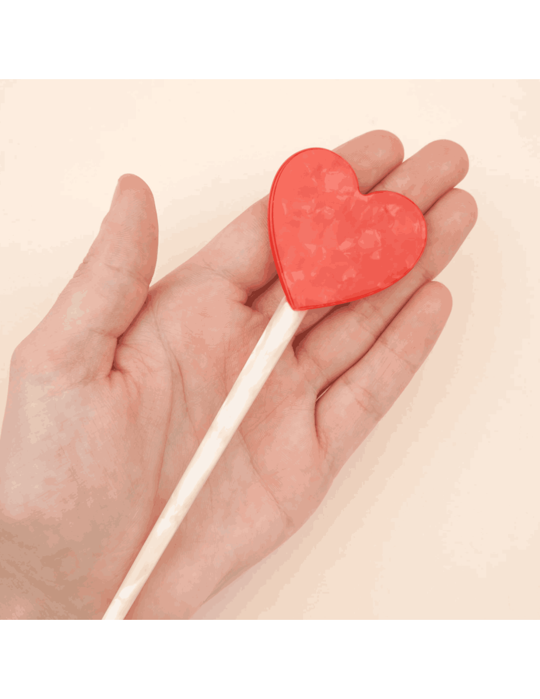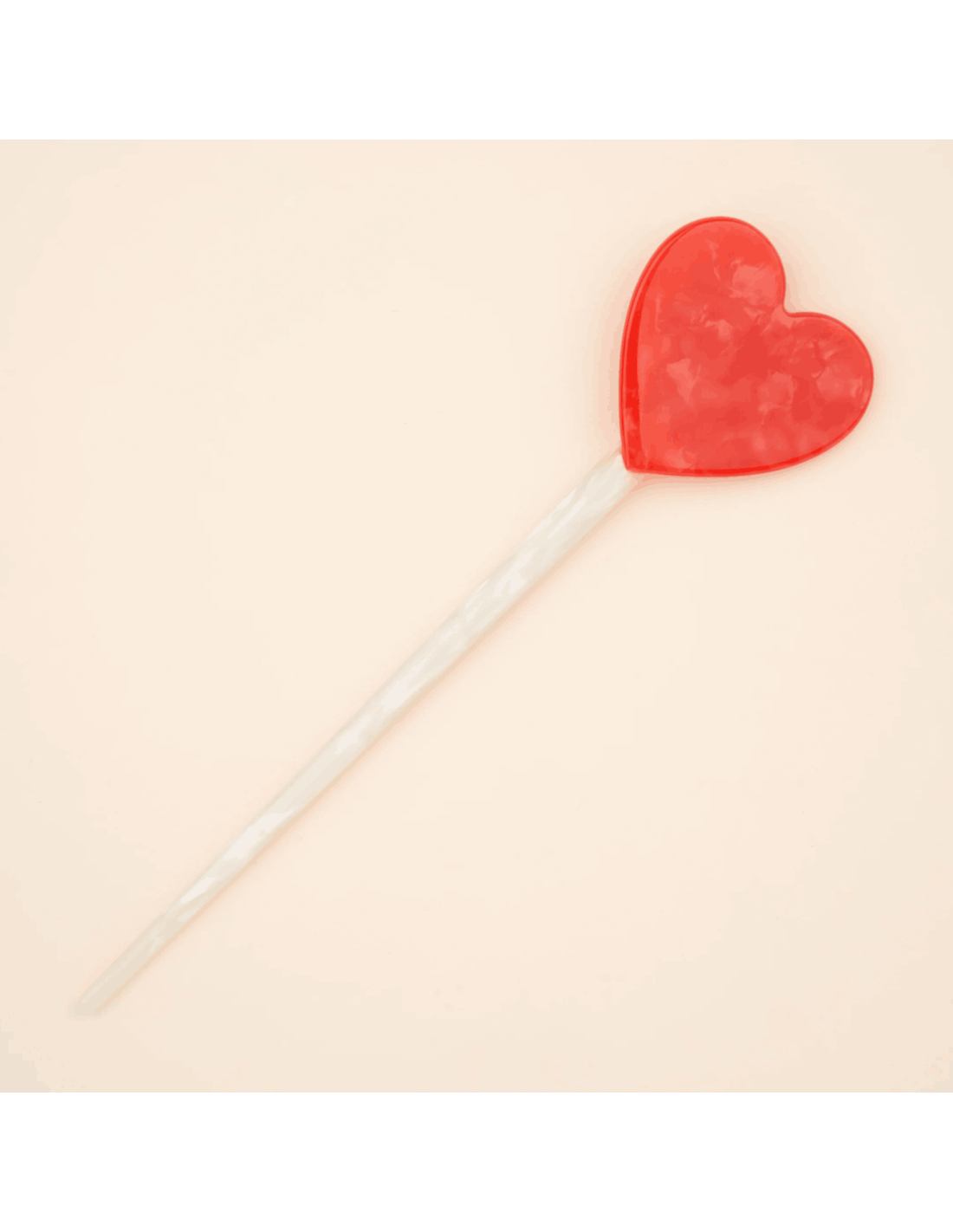 Coucou Suzette a imaginé ce grand pic à cheveux en forme de sucette coeur, qui nous rappelle tellement de bons souvenirs.