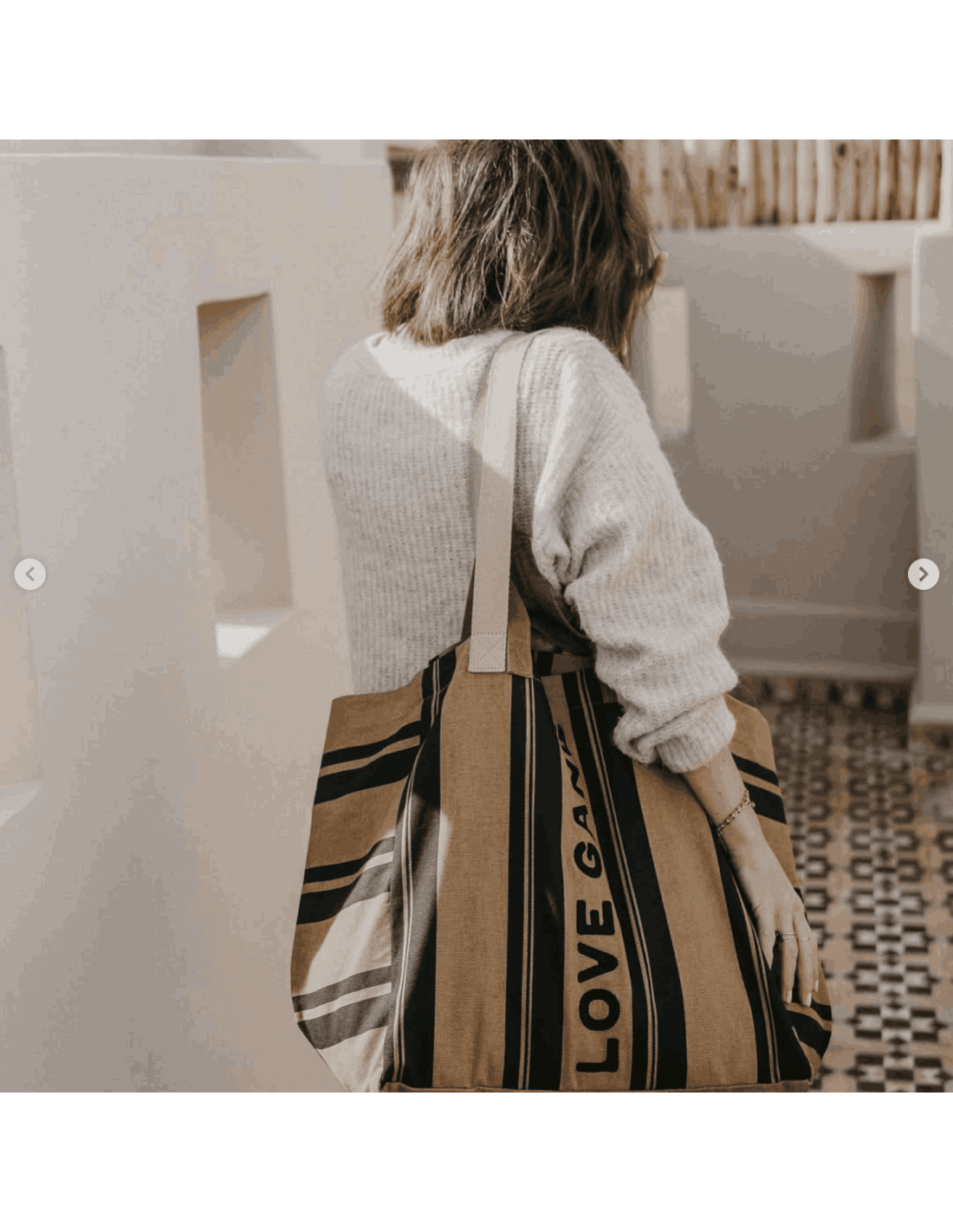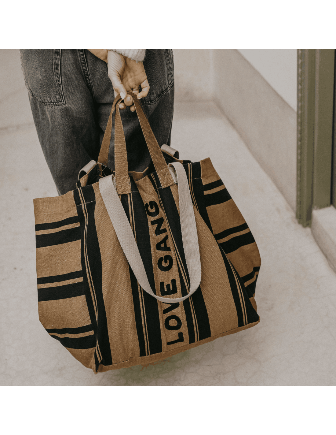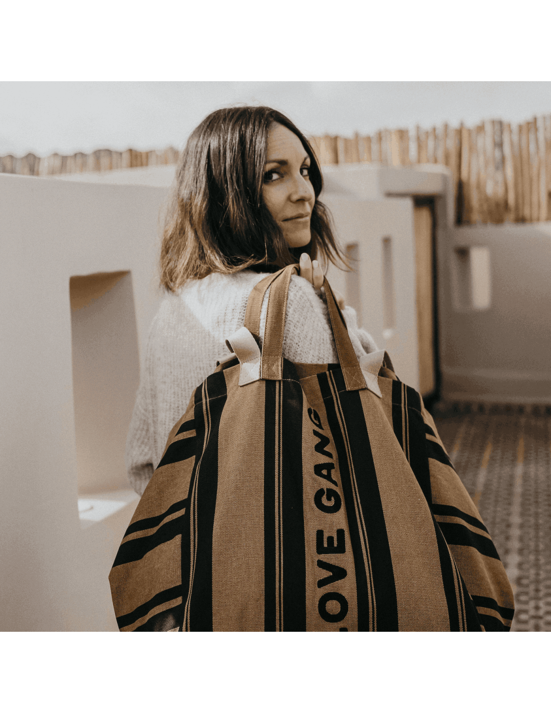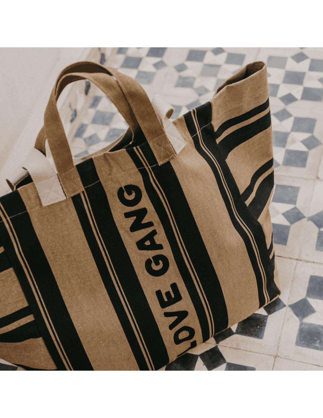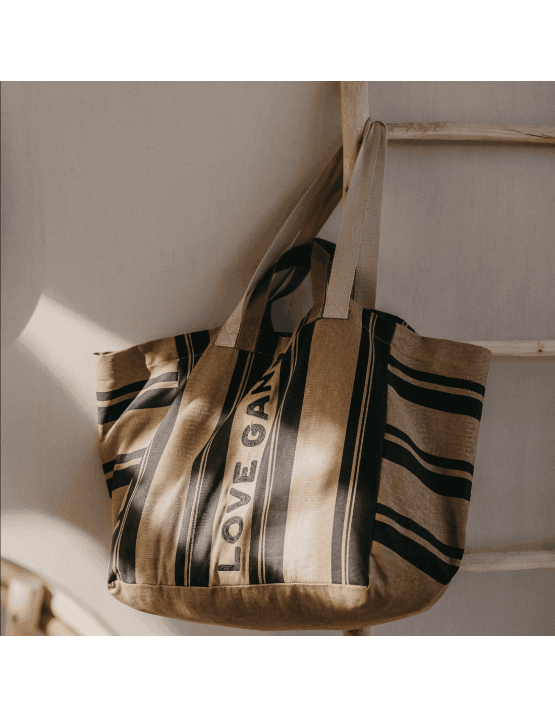 Que ce soit pour une sortie en famille, un week-end en amoureux ou pour trimballer toutes les affaires des enfants, ce sac cabas rayé "Love Gang" au format XL sera votre meilleur allié.