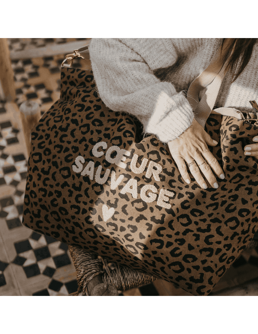 Que ce soit pour une sortie en famille, un week-end en amoureux ou pour trimballer toutes les affaires des enfants, ce sac cabas léopard "Coeur Sauvage" au format XL sera votre meilleur allié.