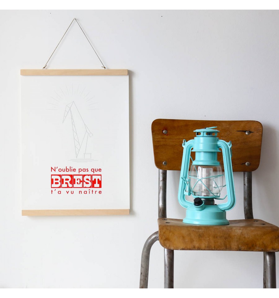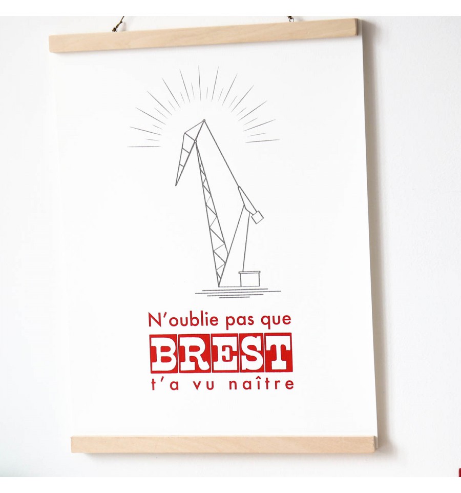 Une sérigraphie pour les brestois en cadeau de naissance ou pour les expatriés ! "N'oublie pas que Brest t'as vu naître", est une affiche sérigraphiée à la main à Brest dans l'atelier du Marquis de Moon.
