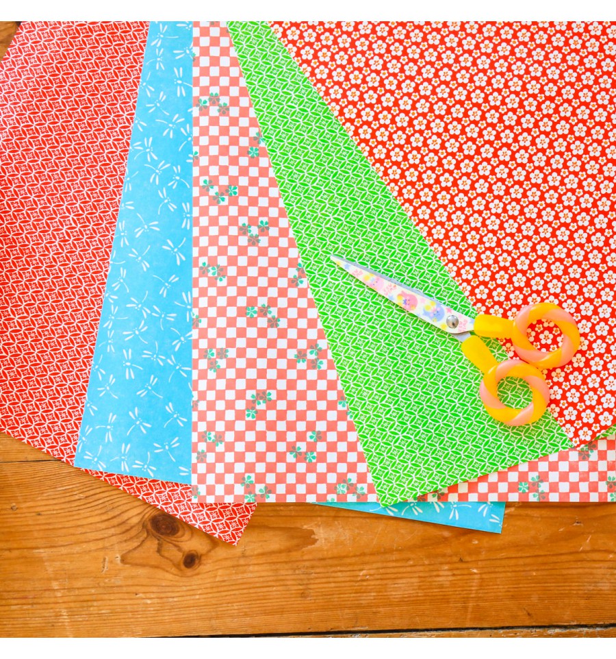 Set de 5 feuilles assorties de papier japonais
