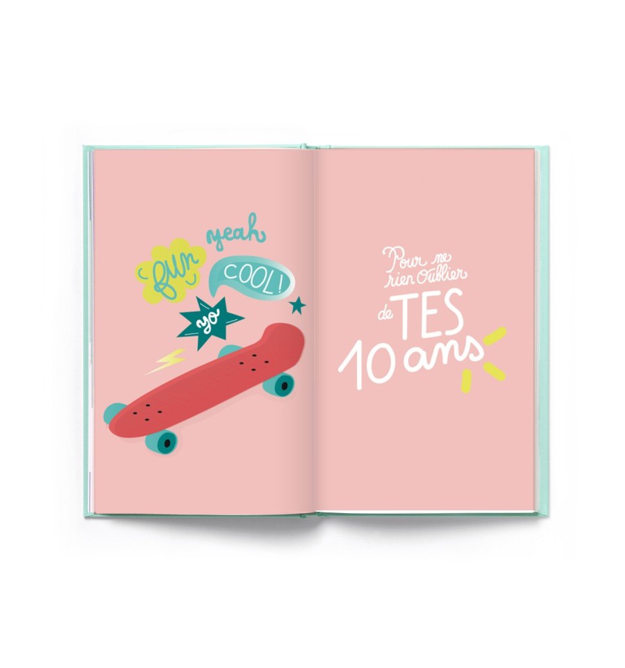 Vous avez aimé l’incontournable cahier de naissance ? Vous allez adorer ce cahier de souvenirs, pour ne rien oublier des 2 à 10 ans de votre enfant ! Chaque année, il vous suffira d’une petite heure pour consigner des souvenirs précieux sur son caractère, ses amis, sa vie à l’école, ses victoires et les grands évènements de l’année en cours !