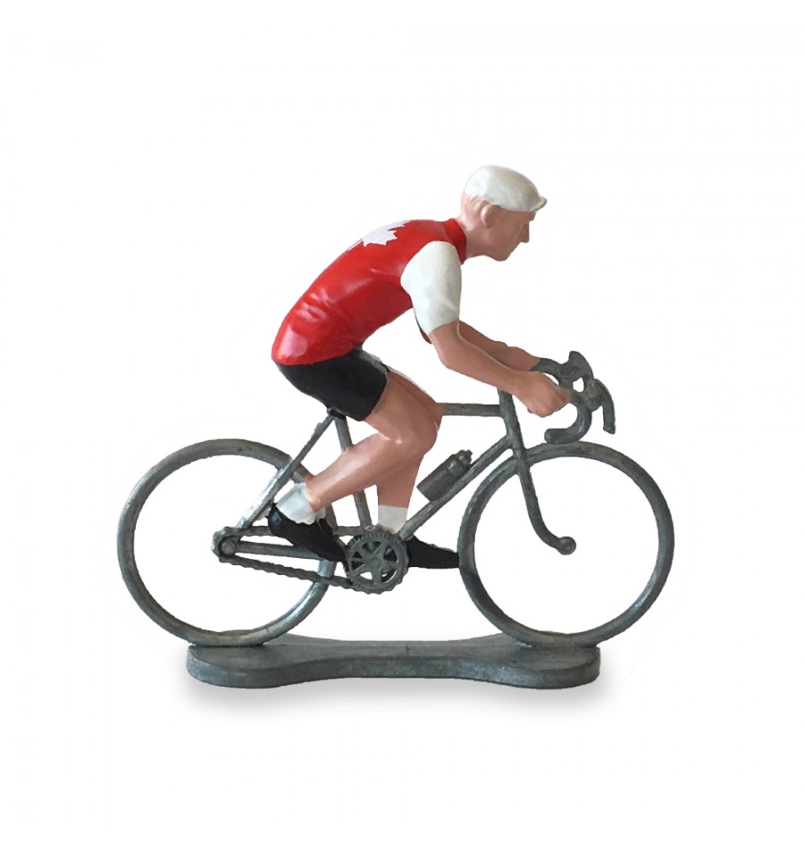 Cette figurine en métal représente un cycliste portant le maillot des Etats-Unis d'Amérique.