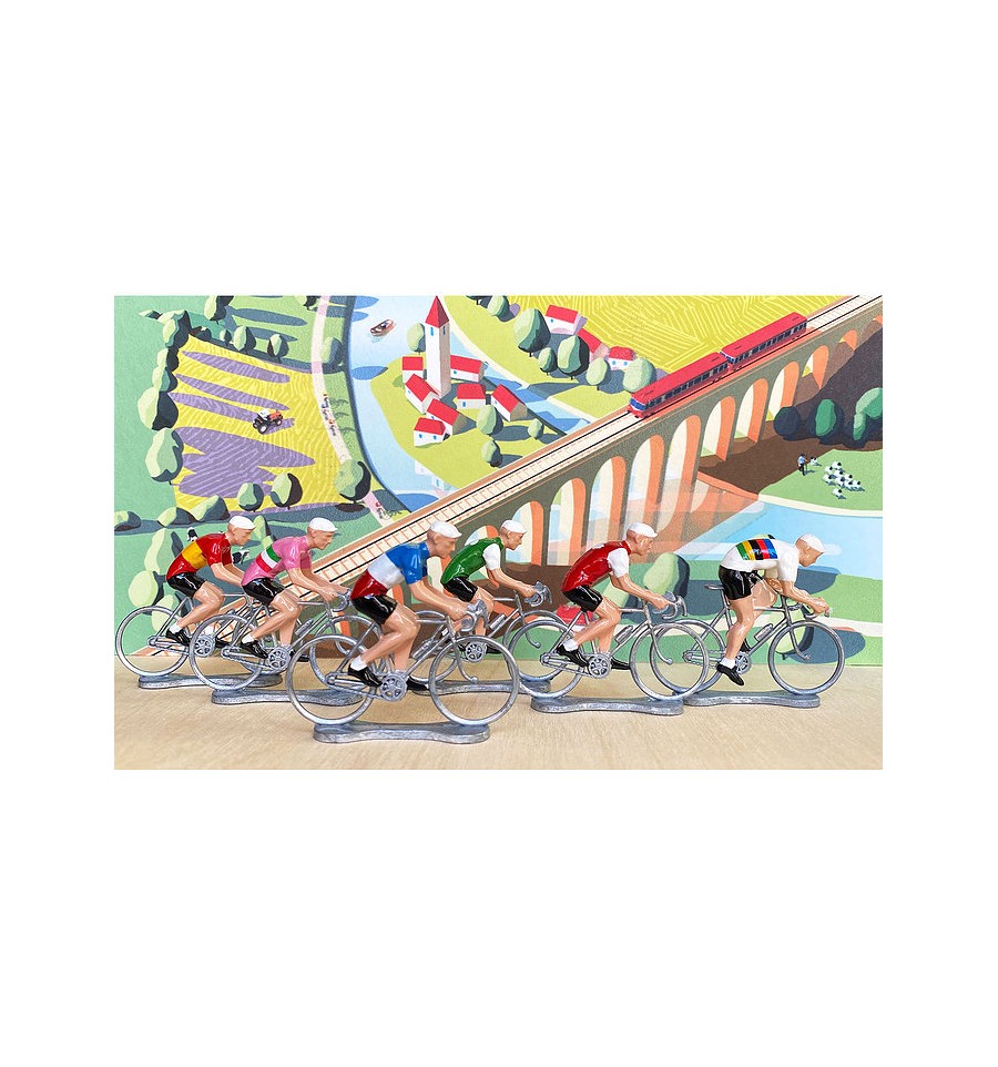 Un jouet, un jeu, un joyeux peloton de petits cyclistes, les figurines Bernard & Eddy sont tout ça à la fois. Chaque figurine, pièce unique peinte à la main, représente un pays.