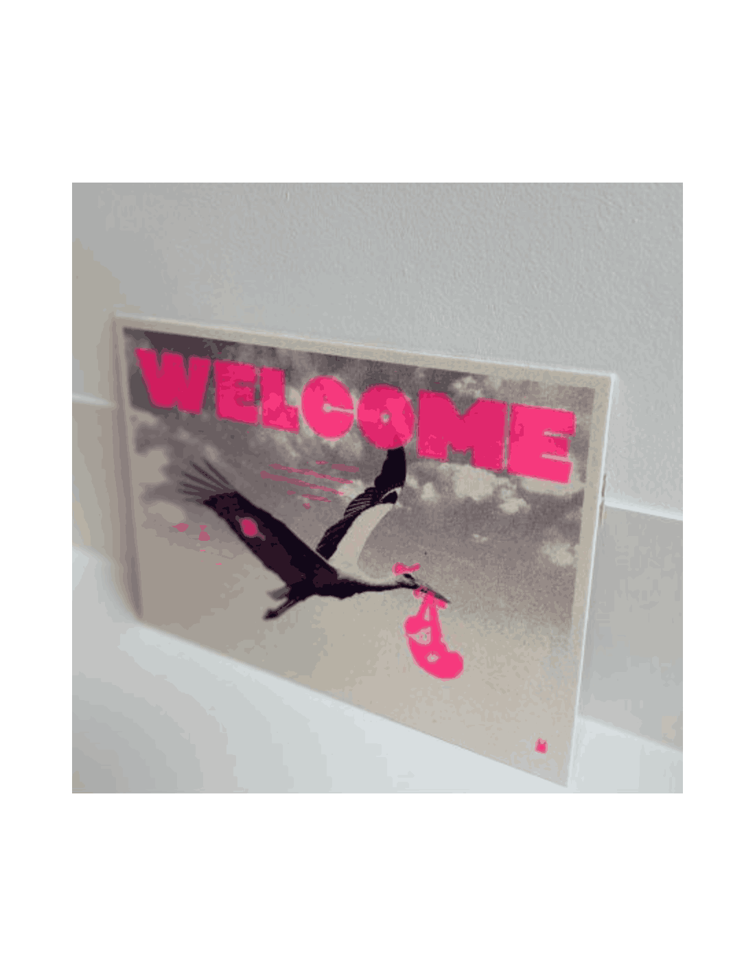 Une carte qui invite à la douceur, à souhaiter la bienvenue à une bébé ! Une carte à offrir à l'occasion d'une naissance.