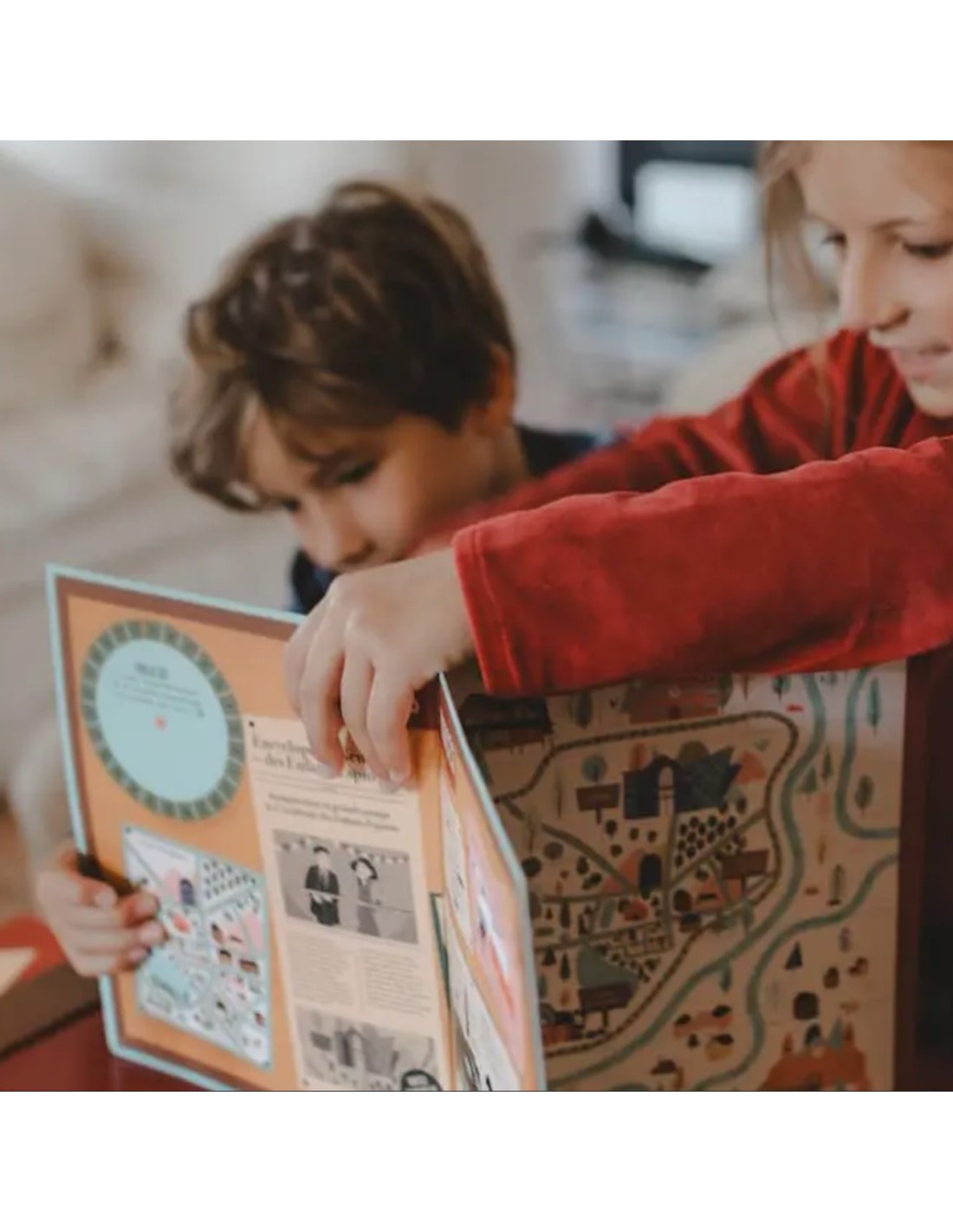 - Du matériel d'enquête : des personnages, une roue cryptographique, un billet de train... autant d’éléments indispensables pour mener l’enquête !