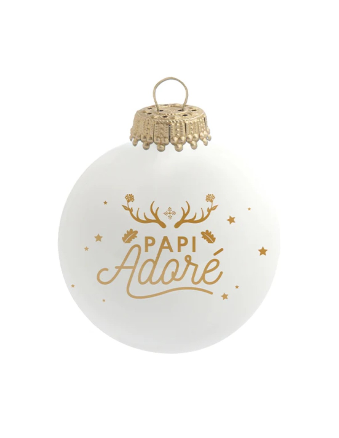 Soufflée à la bouche, cette boule de Noël blanche laquée est imprimée avec le message "Papi adoré".