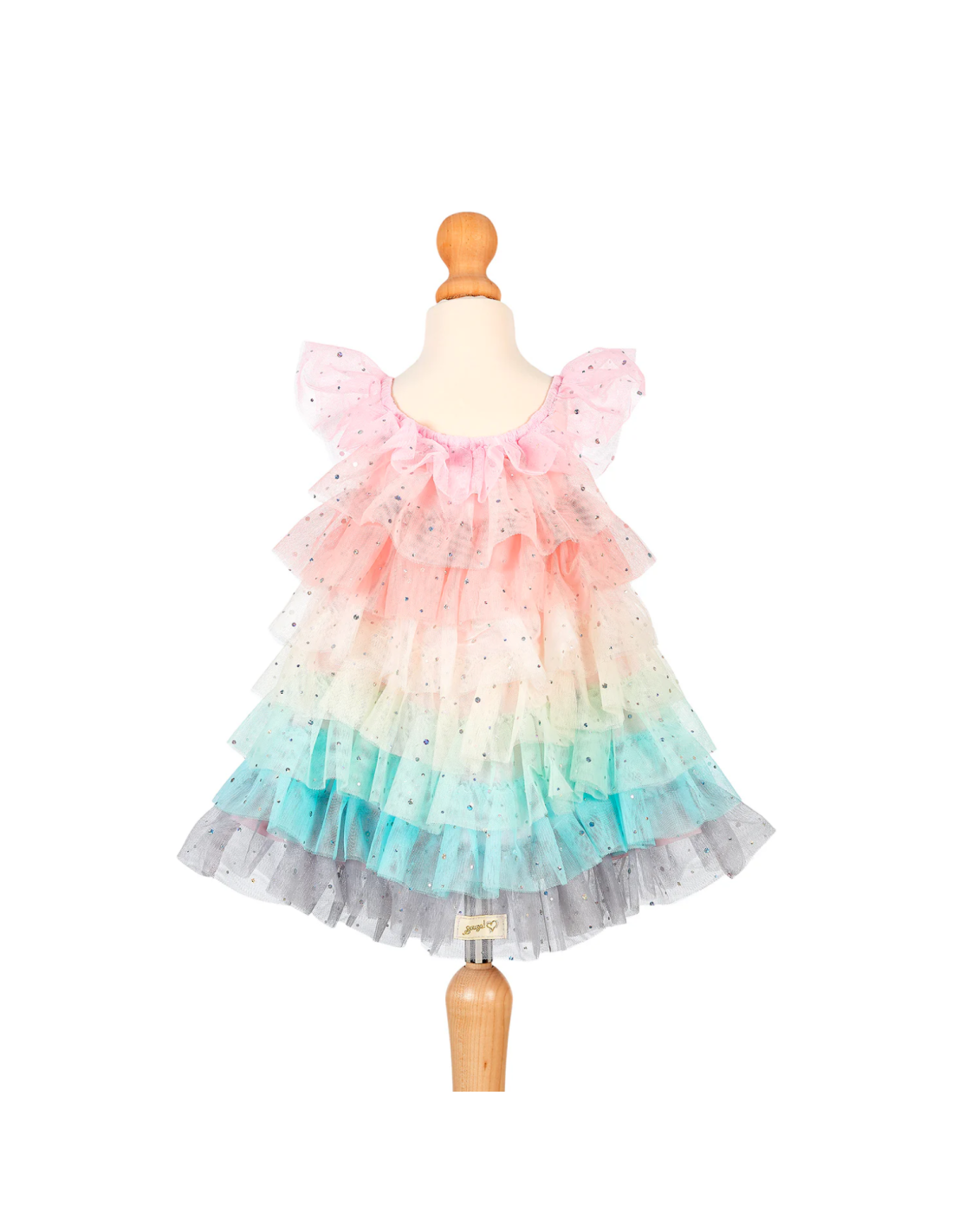 Composée d'une multitude de tulles de toutes les couleurs, la robe donne l'impression de flotter dans l'air, aussi légère qu'un nuage.