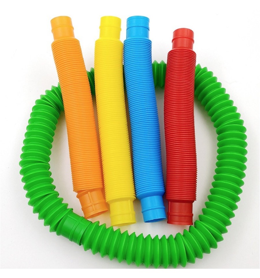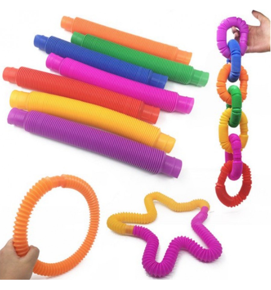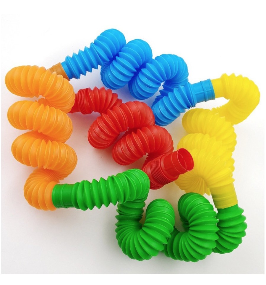 Vos enfants vont adorer manipuler ces tubes accordéons en plastique; qui peuvent aussi s'accrocher les uns les autres.