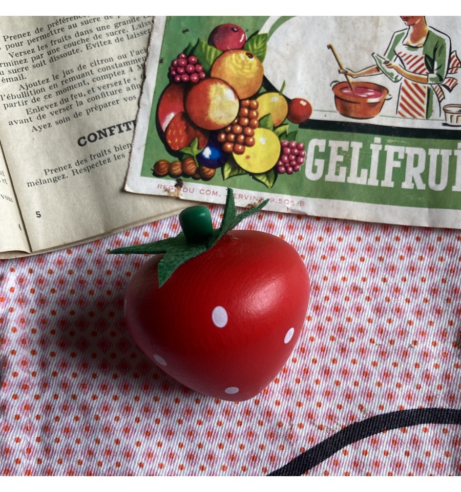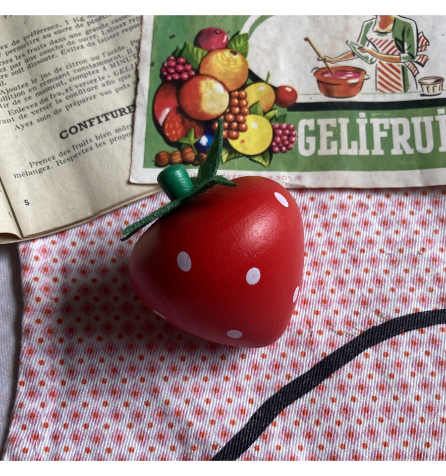 Cette fraise en bois sera un parfait élément de dinette qui va venir compléter votre garde manger... en bois.