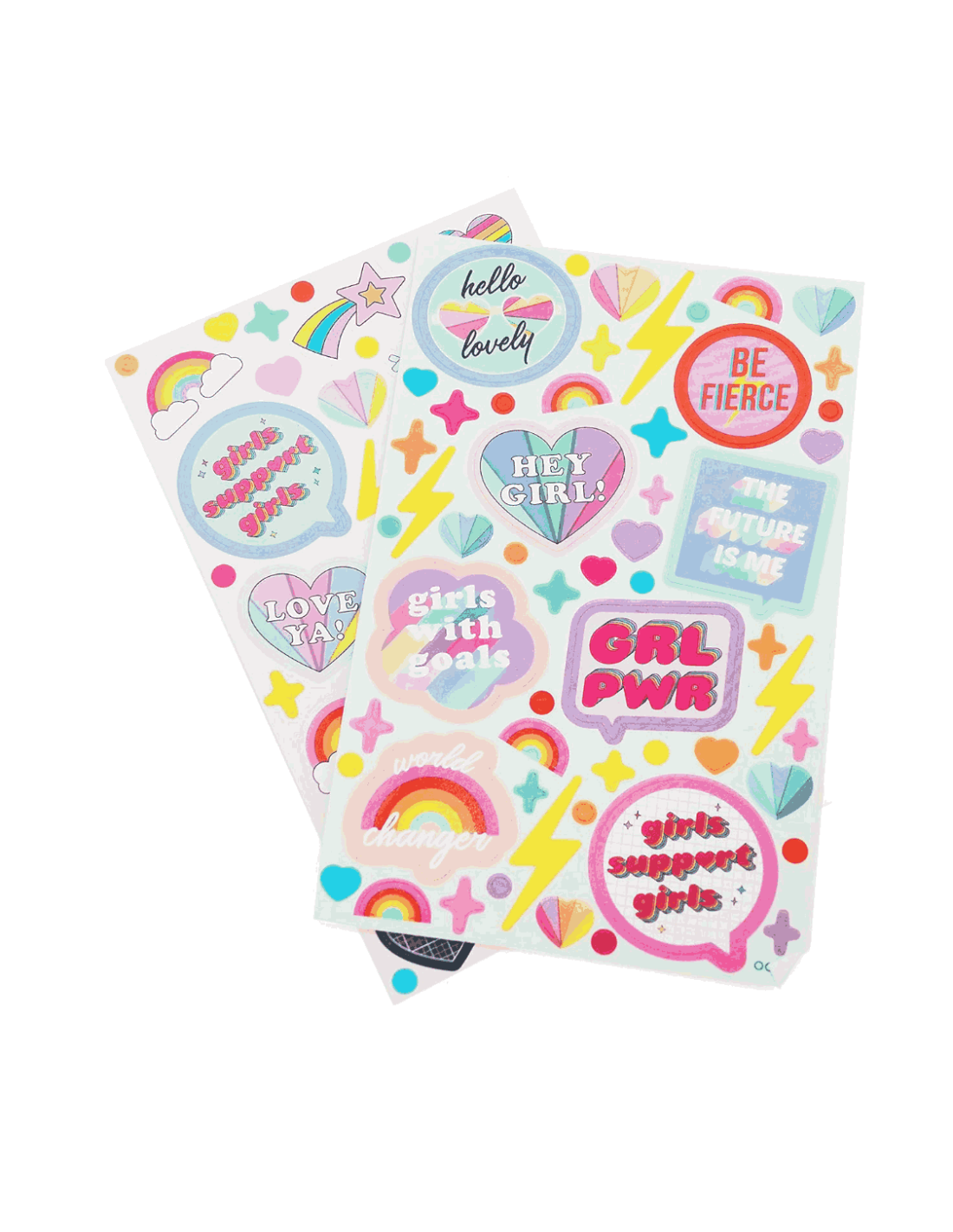Faites le plein de couleurs avec cette pochette Ooly contenant plein d'autocollants sur le thème du Girl Power: