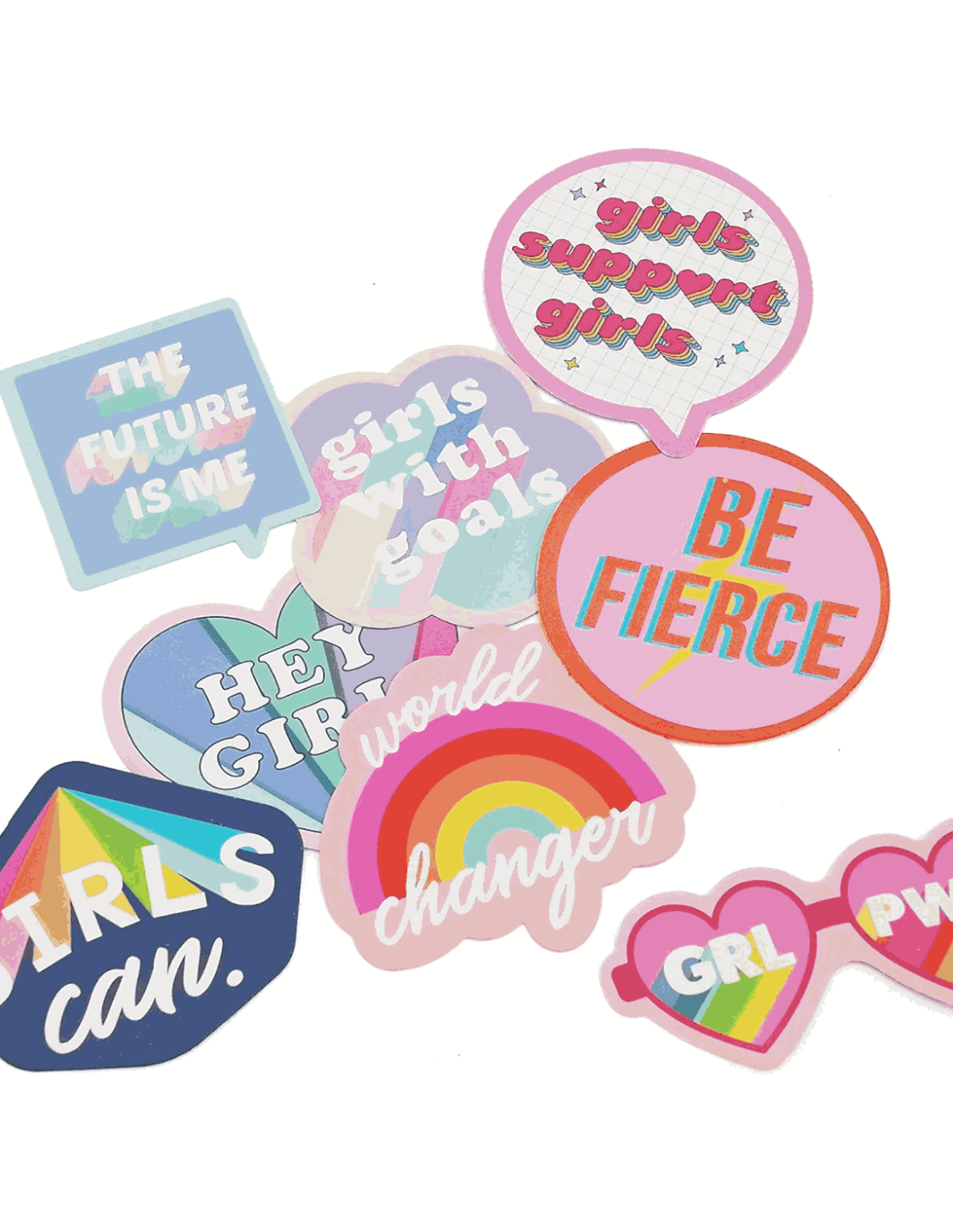 - 8 autocollants prédécoupés : "girls can", "the future is me" "girls with goals", etc...