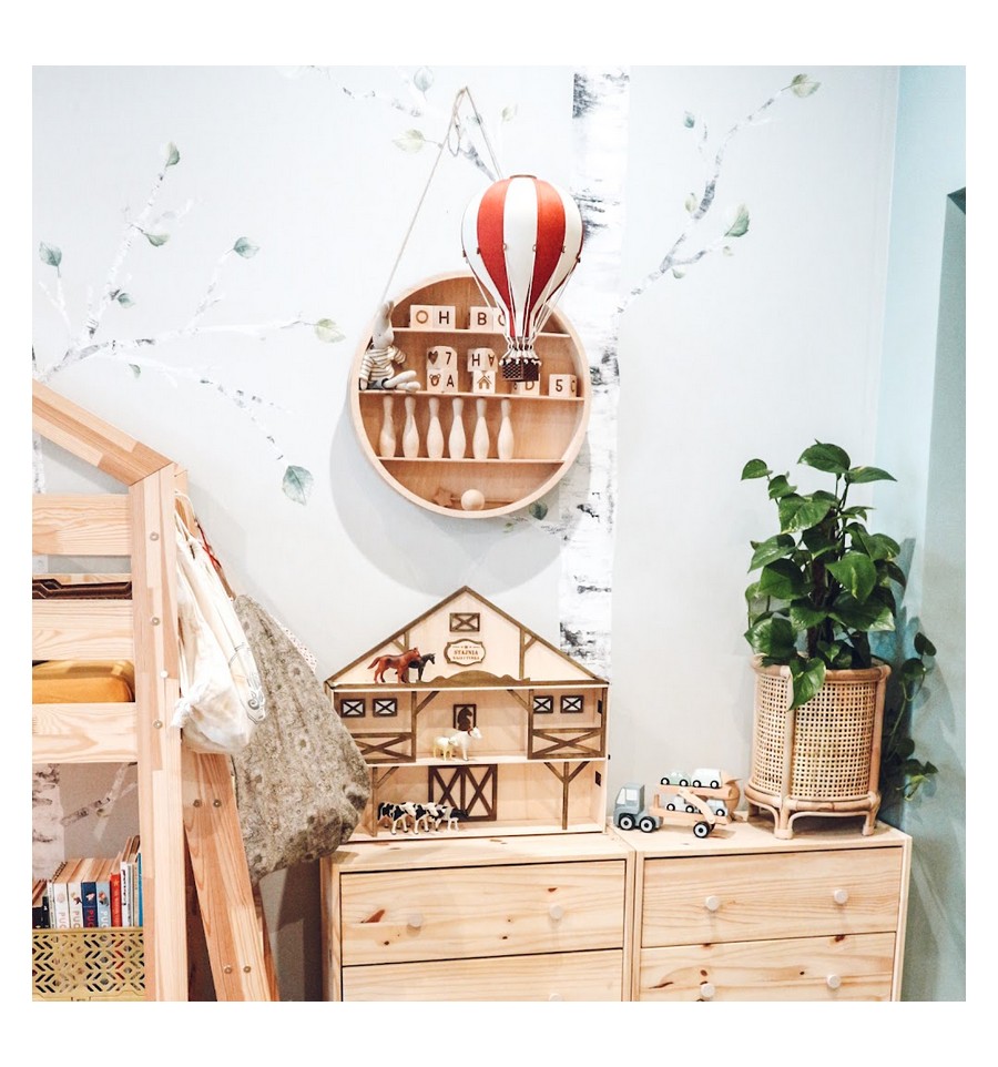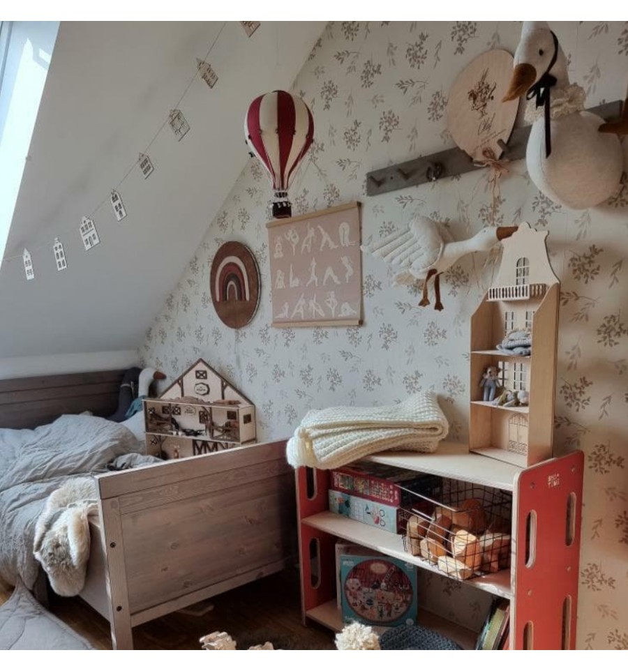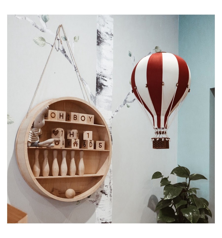 Créer un univers rêveur dans la chambre de vos enfants grâce à cette montgolfière élégante et poétique de couleur bordeaux.