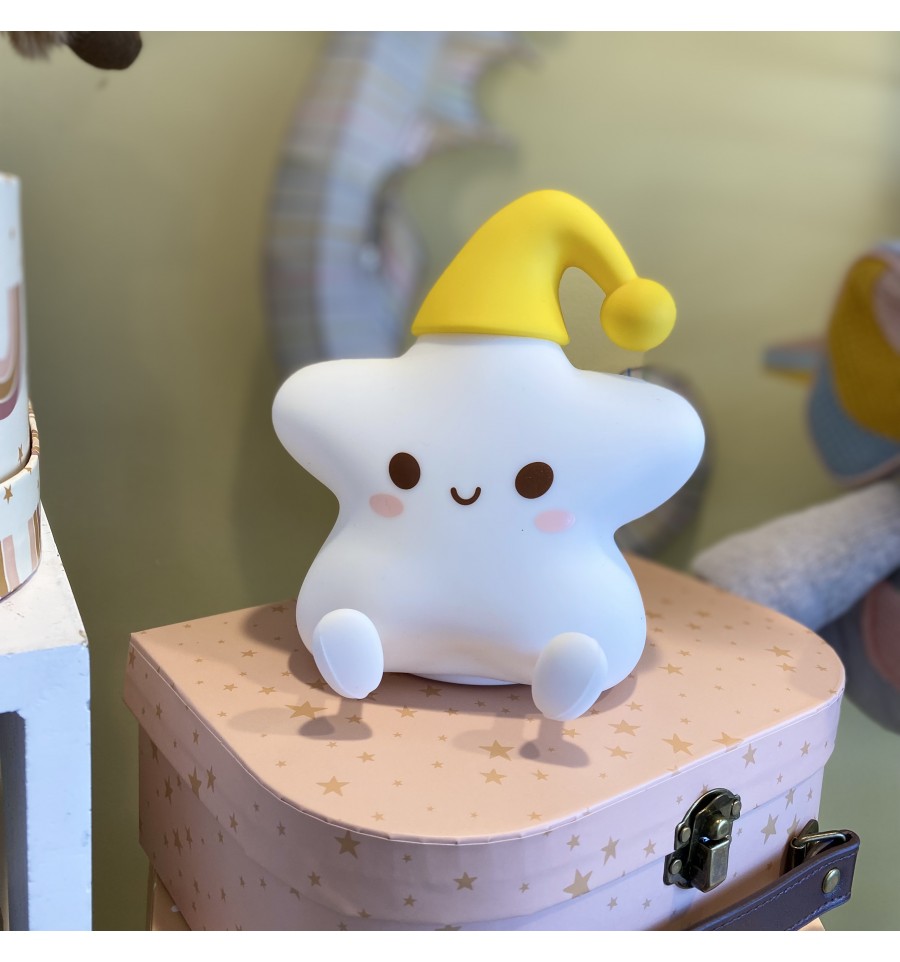 Cette veilleuse souple en forme d'étoile avec son bonnet de nuit jaune fera le bonheur de vos enfants !