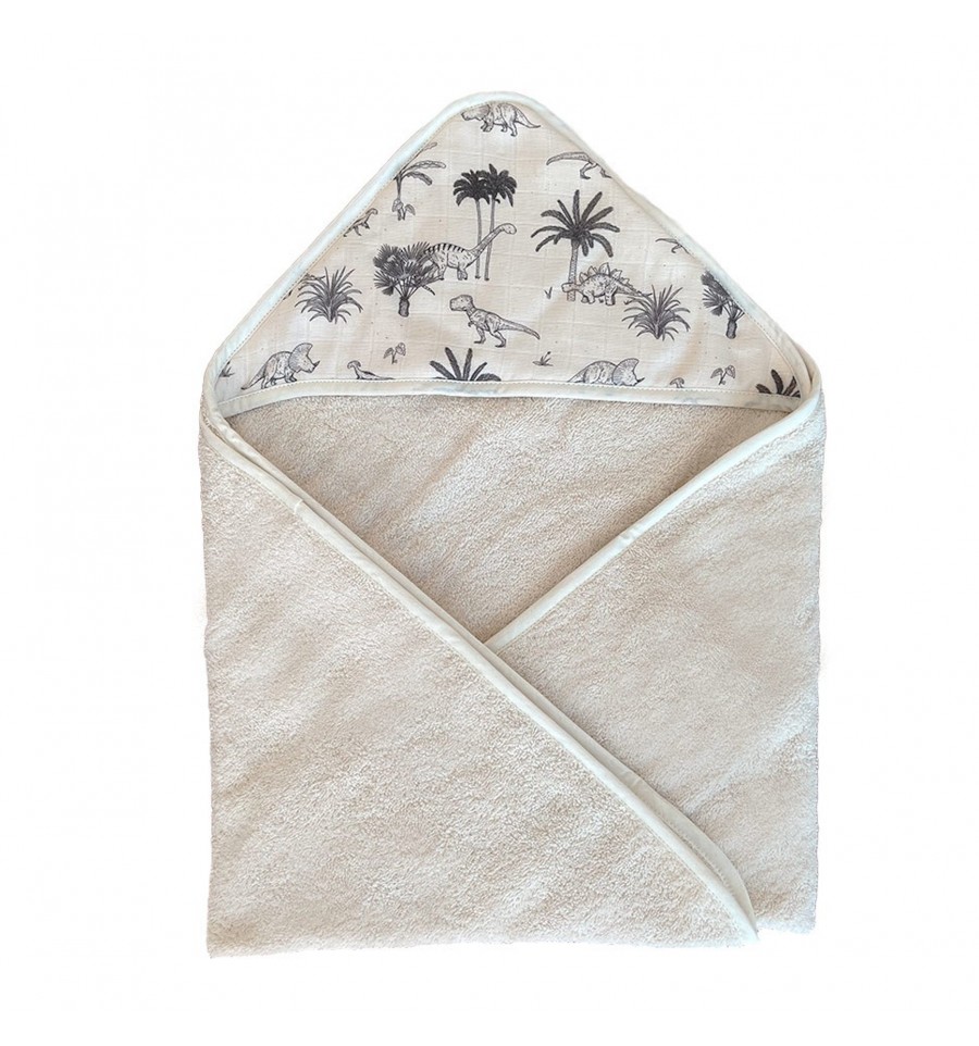 Cette adorable cape de bain aux motifs dinosaures est idéale pour emmitoufler votre enfant après son bain ou une sortie à la piscine.