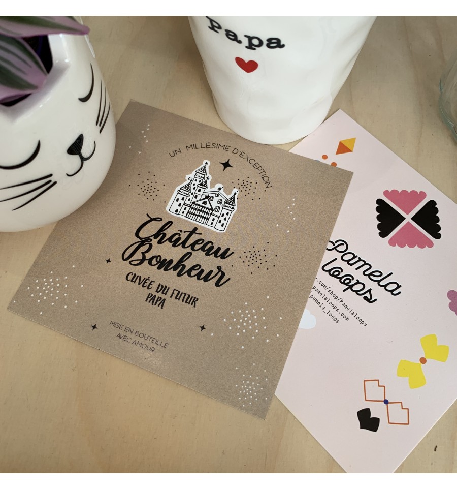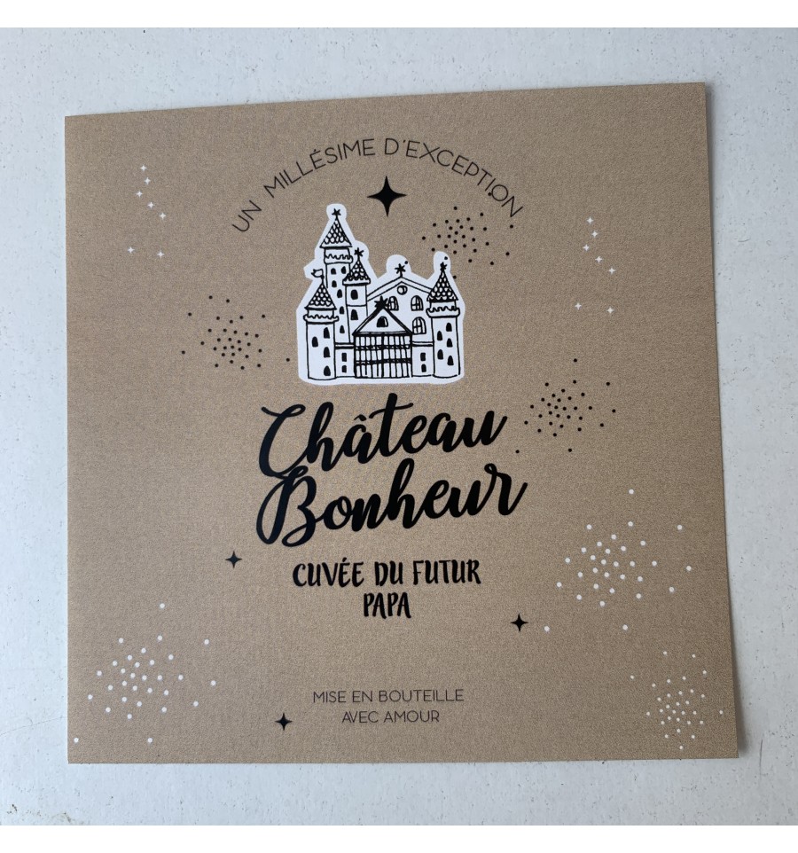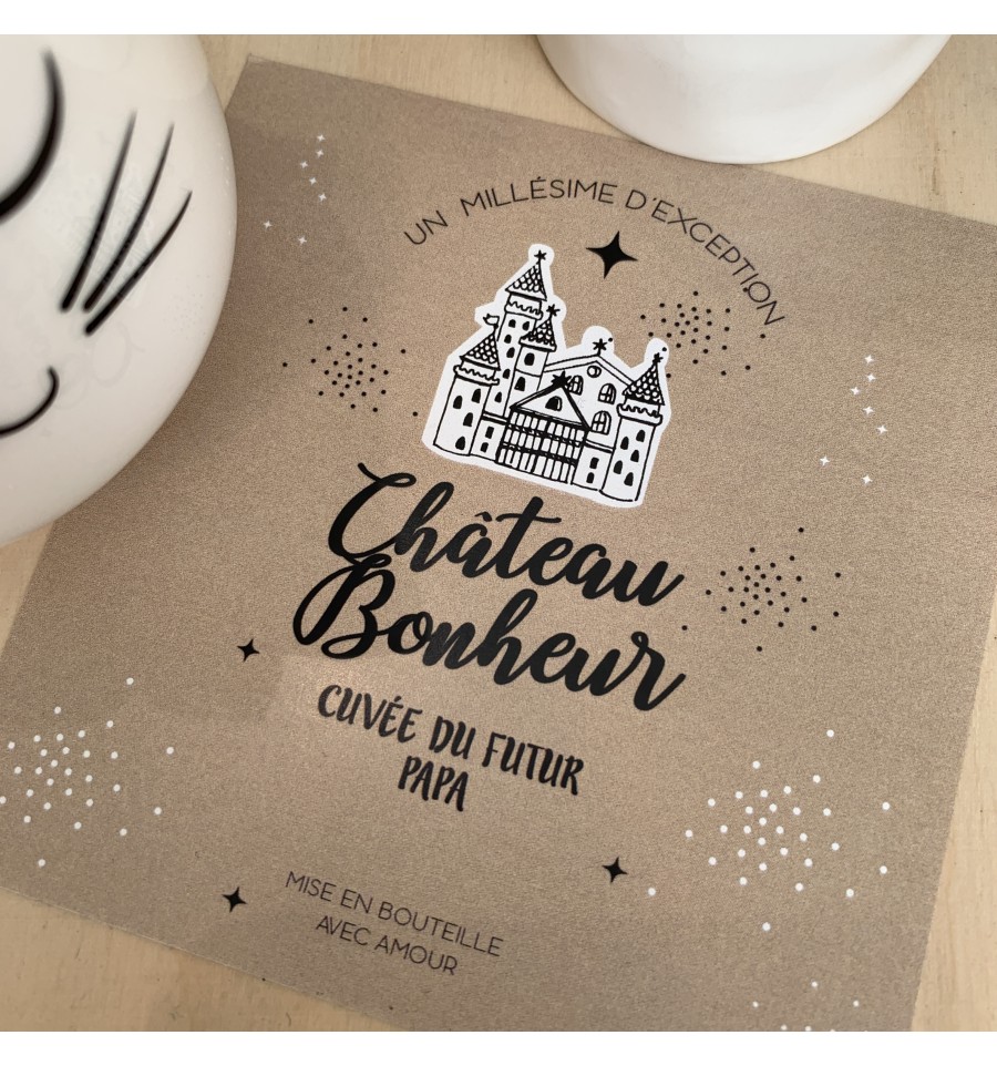 On adore le détail de l'étiquette "Un millésime d'exception", "Château bonheur", "cuvée du futur papa"