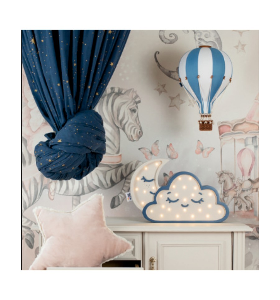 Créer un univers rêveur dans la chambre de vos enfants grâce à cette montgolfière élégante et poétique de couleur bleu jeans