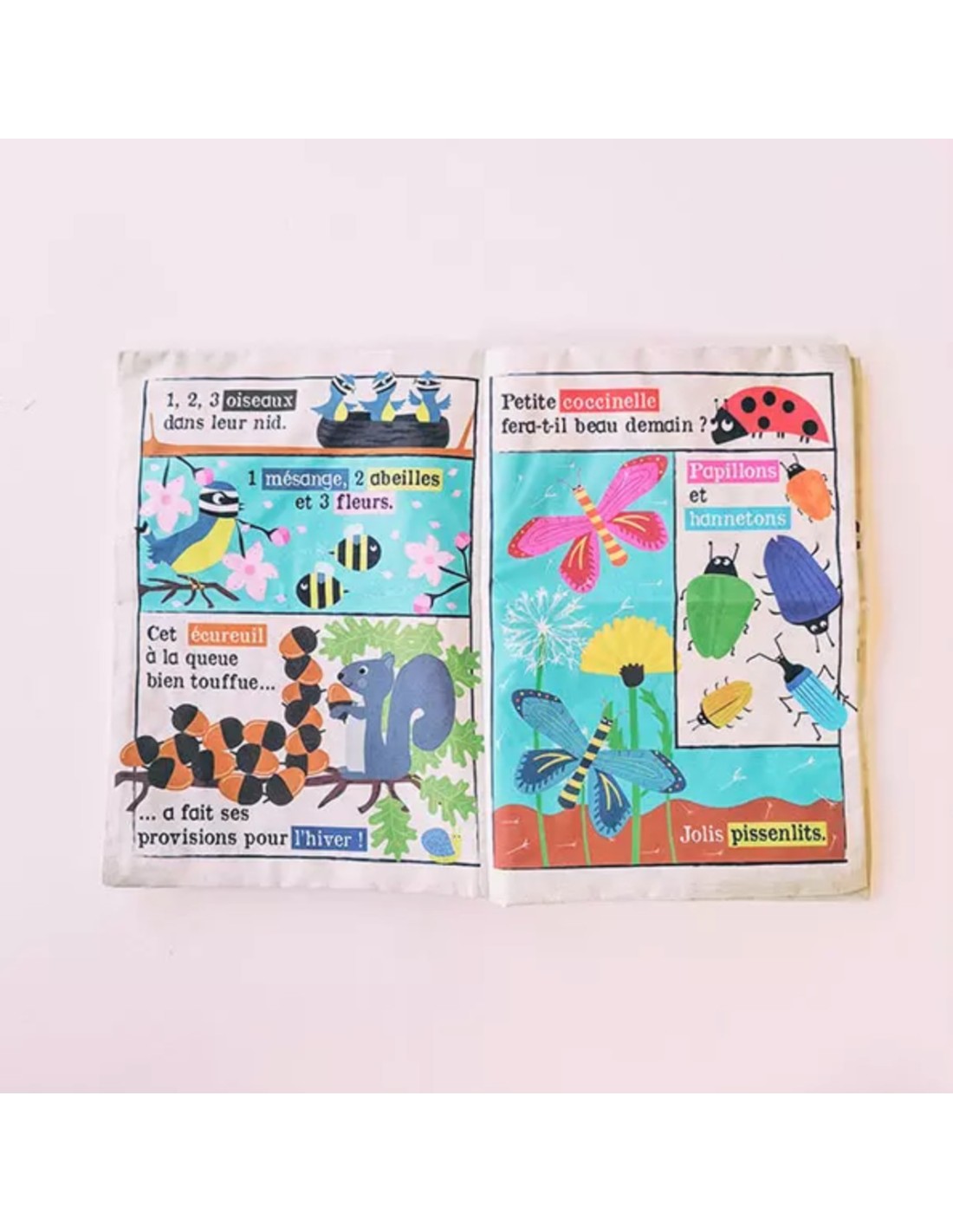 Le format et la matière souple de ce livre permet à bébé de le plier, de le rouler. Il peut se glisser facilement dans un sac pour vous accompagner lors de vos sorties.