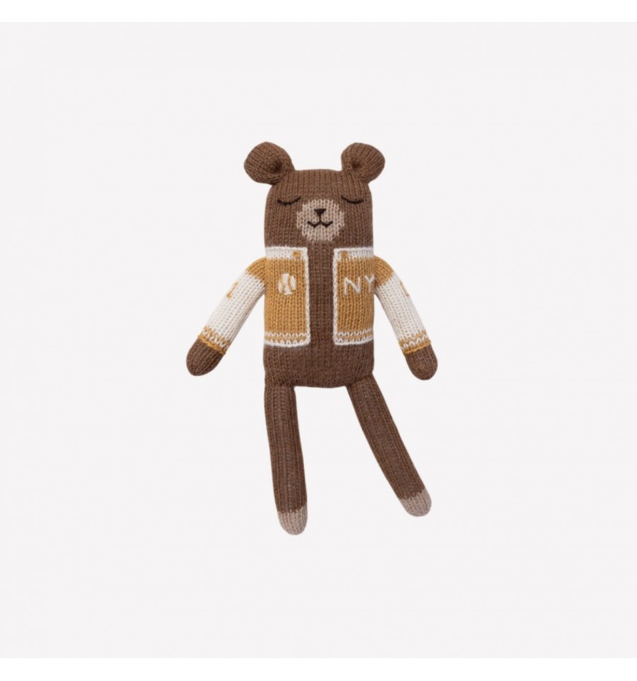 On adore son teddy de baseball avec les lettres NY brodées sur la poitrine.