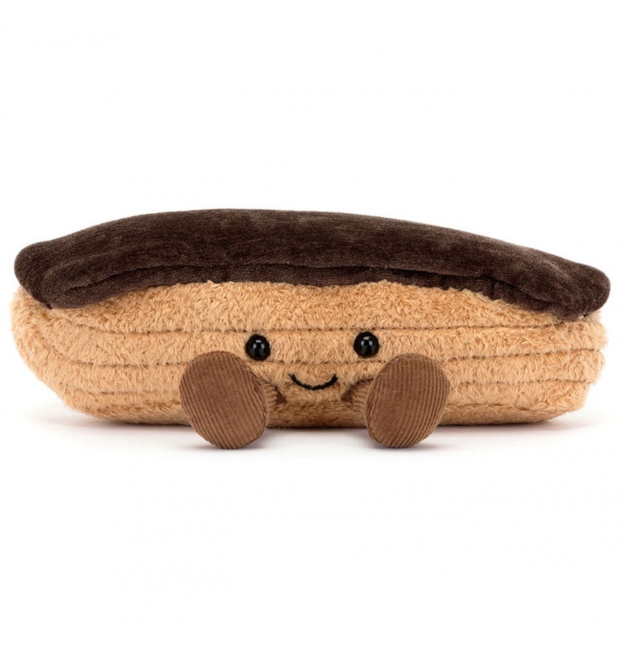 Venez rencontrer Etienne l'éclair au chocolat de la super marque Jellycat qui est appétissant à souhait sans calories, sans miettes, sans traces de chocolat sur les doigts bref vous l'avez compris, cet éclair est gourmand en câlins !
