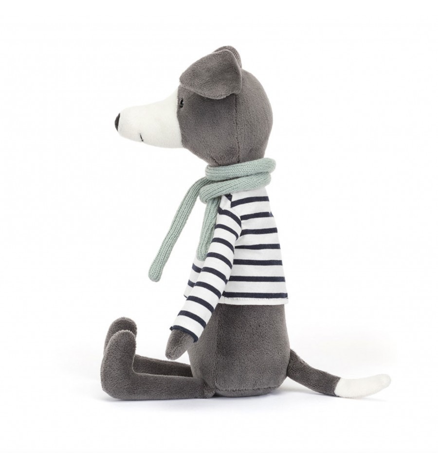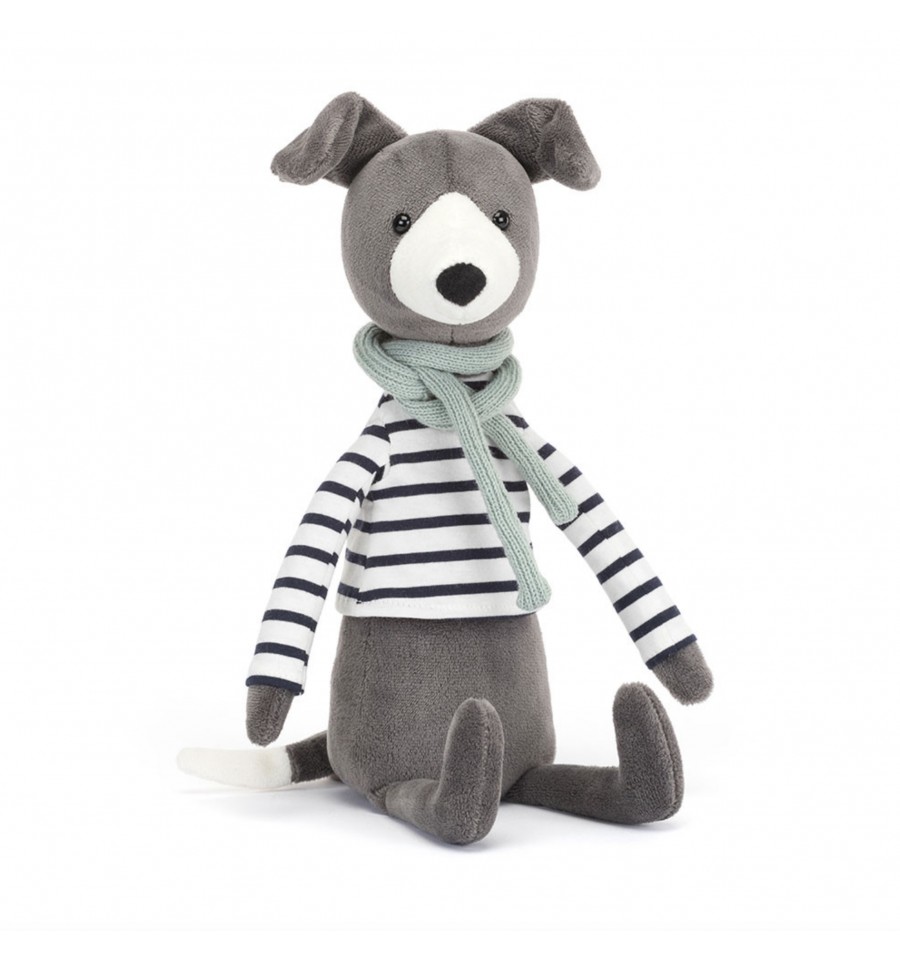 Craquez pour cette peluche chien gris Beatnik Buddy Whippet et son chic à la française !