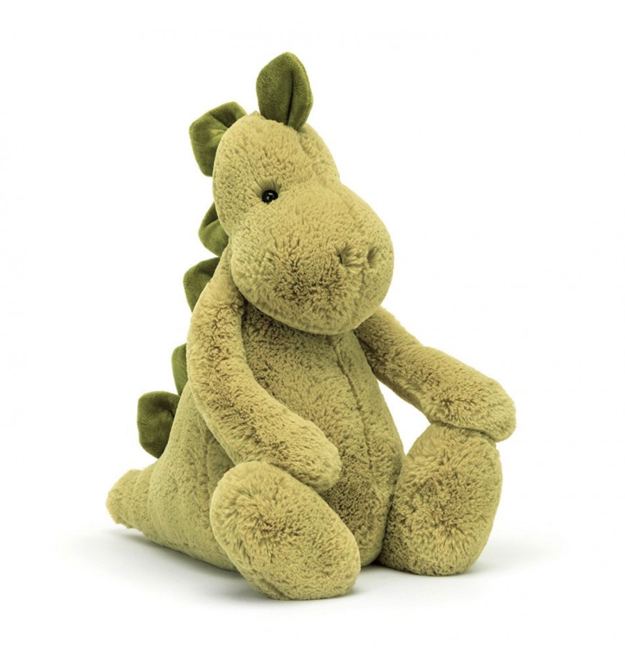 Ouvrez grands vos bras et câlinez cette adorable peluche dinosaure Bashful Dinosaur au format Huge, imaginée par Jellycat.