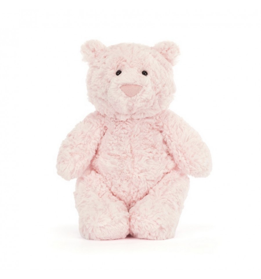 Elle est aussi adorable que son cousin ours en peluche et elle est rose, un rose poudré merveilleux ! On adore, on est fans, elle est sublime.