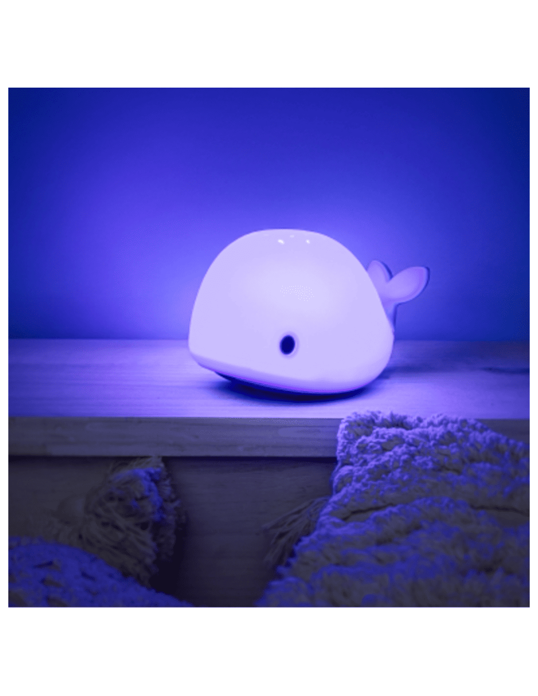 Voilà un cadeau de naissance idéal ! Cette baleine est à la fois une veilleuse et un projecteur sur le plafond.