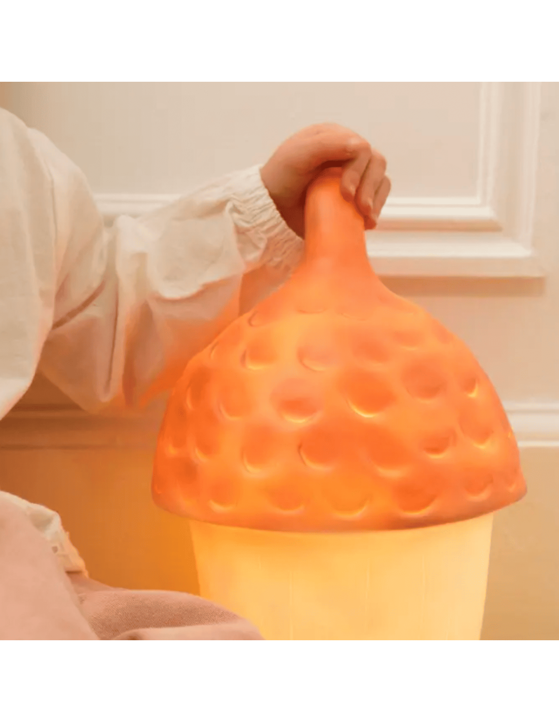 Leur lampe veilleuse en forme de champignon, emblématique, éclaire les nuits et les rêves avec douceur, pour une ambiance féerique et rassurante.