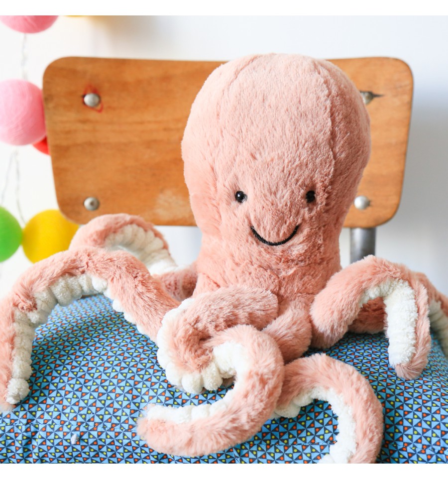 La peluche octopus de chez Jellycat est originale et ravira les collectionneurs. Les peluches de la marque sont particulièrement douces et adaptées aux tous petits. Les tentacules se modulent et se rétractent cela amuse beaucoup les enfants.