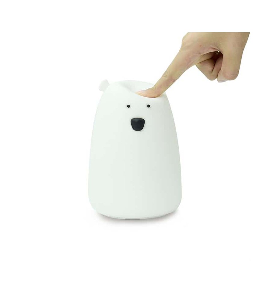 Cette veilleuse souple en silicone en forme d'ours polaire fera le bonheur de vos enfants. Très douce au toucher, ils pourront la câliner et dormir avec elle dans les bras.