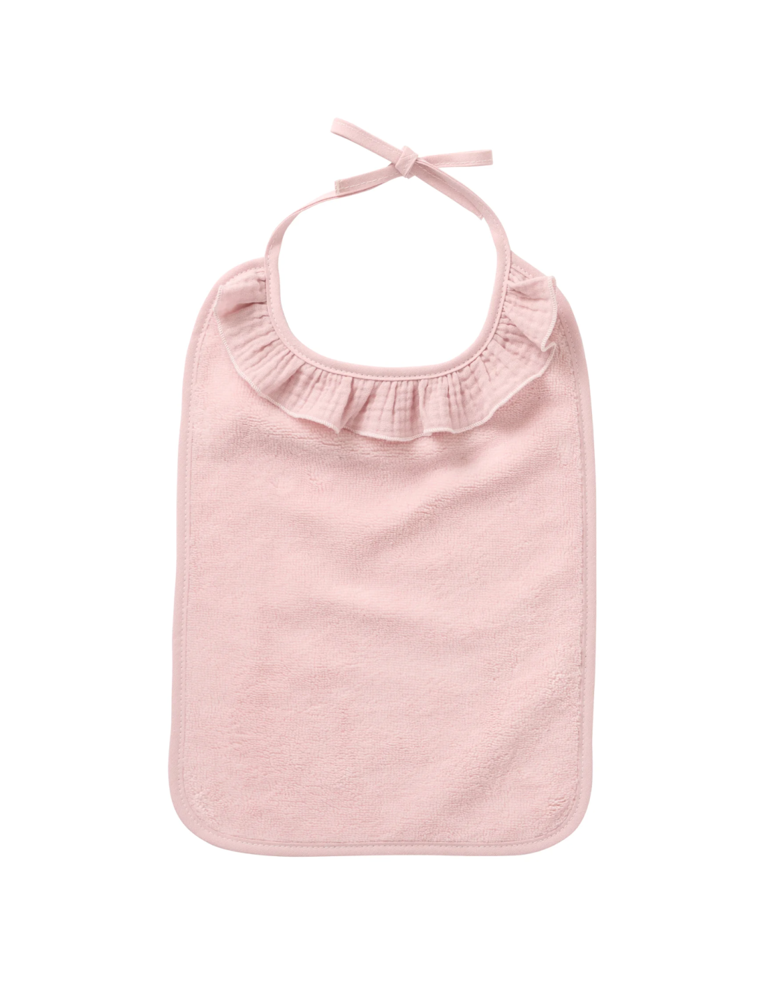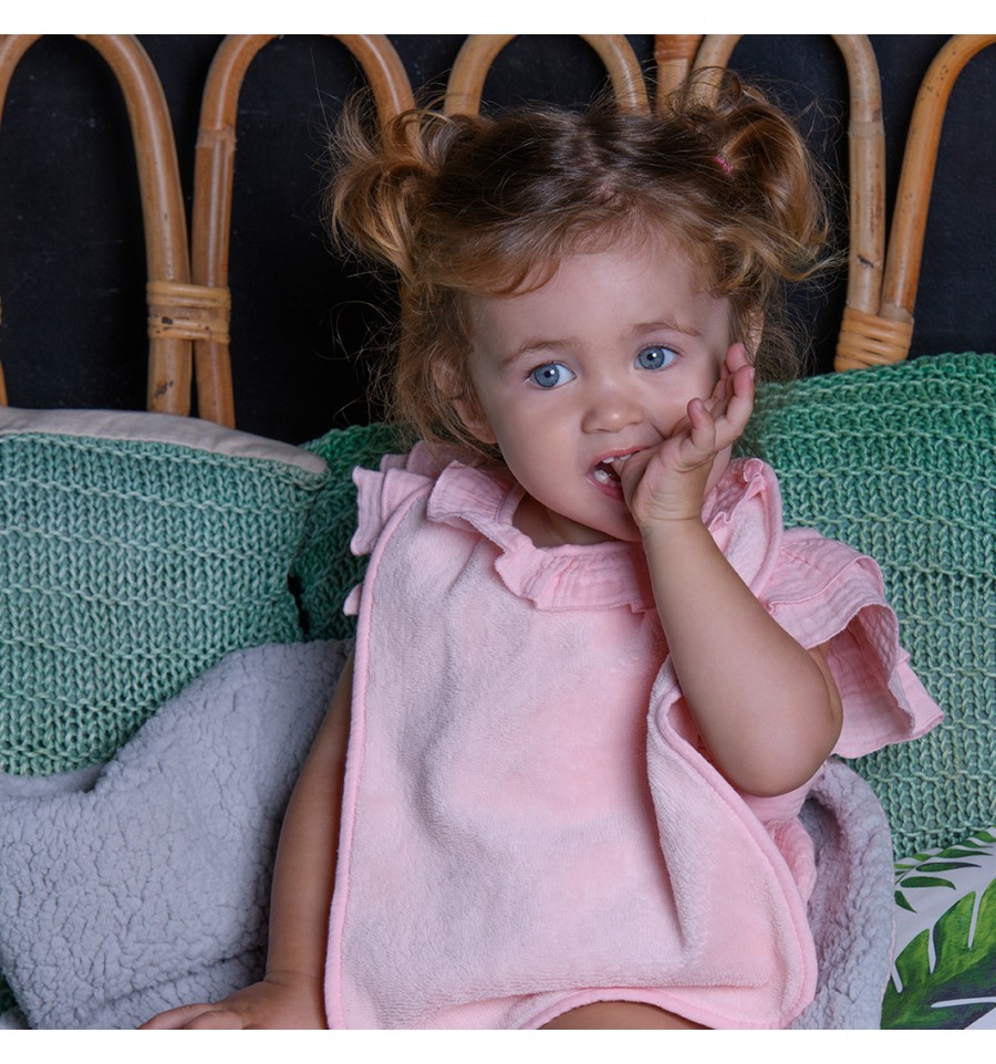 Ce grand bavoir à col Rose Pétale accompagnera bébé à l'heure des repas.