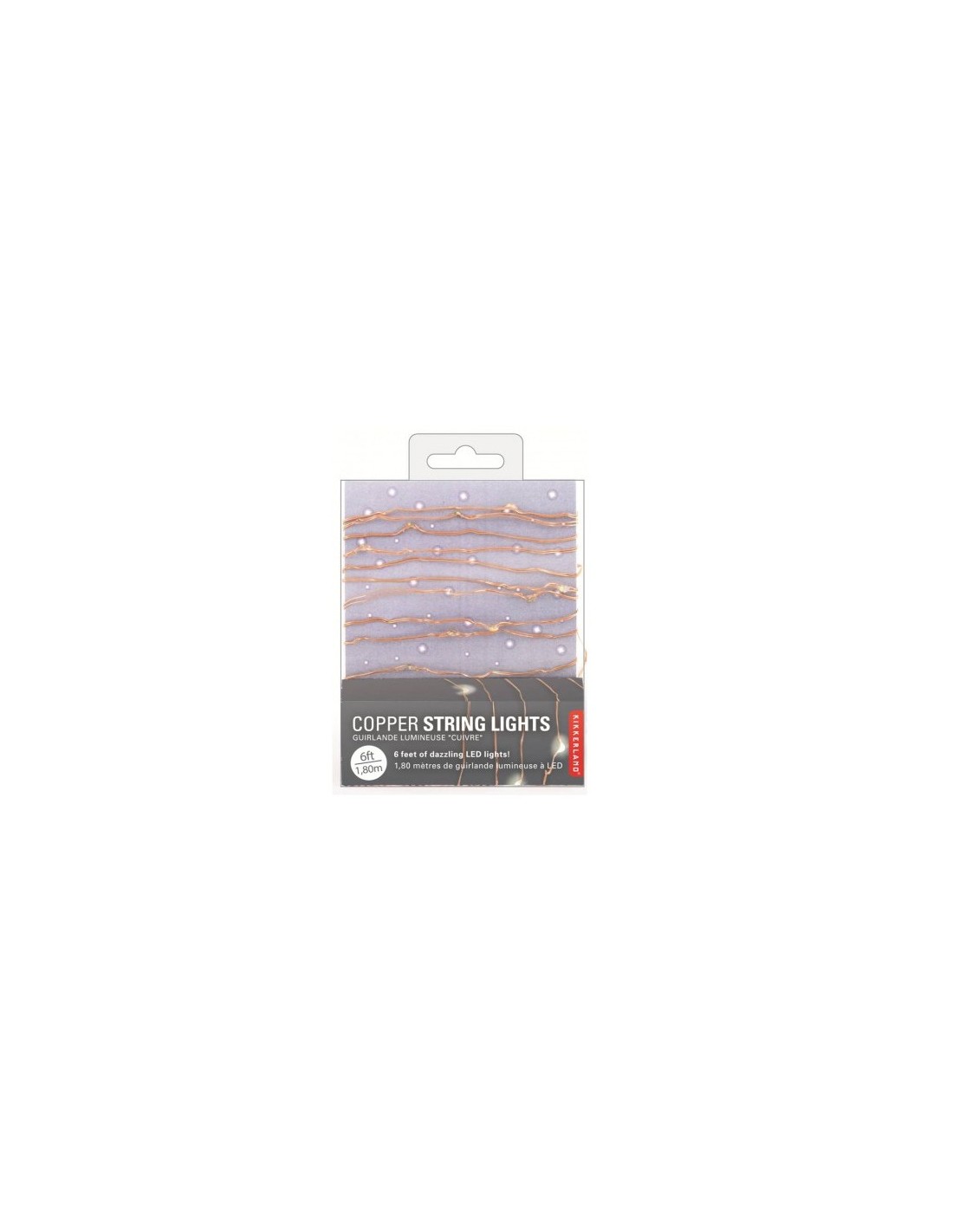Une guirlande lumineuse cuivrée Kikkerland composée de 20 LED qui fonctionne à piles.