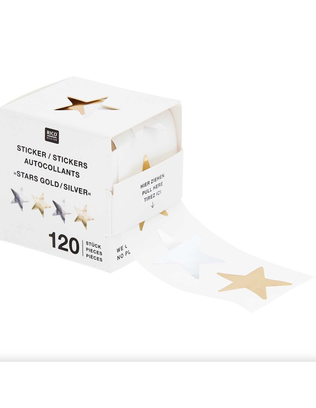 120 autocollants Etoiles dorées et argentées - Rico Design