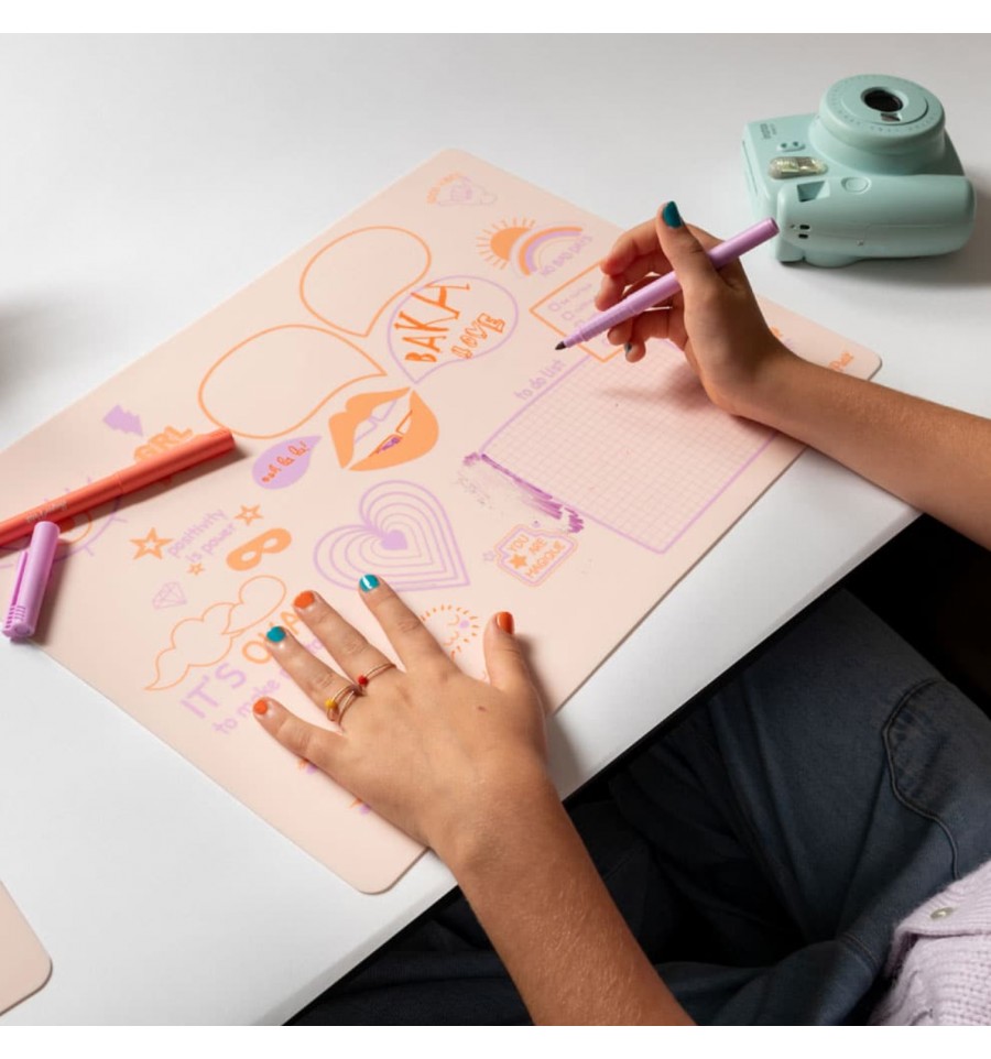 Un design amusant et stimulant pour organiser sa journée, développer ses talents d’artiste, exprimer ses émotions et se détendre en gribouillant. Utile pour protéger les surfaces : pour cuisiner, dans le train, dehors…