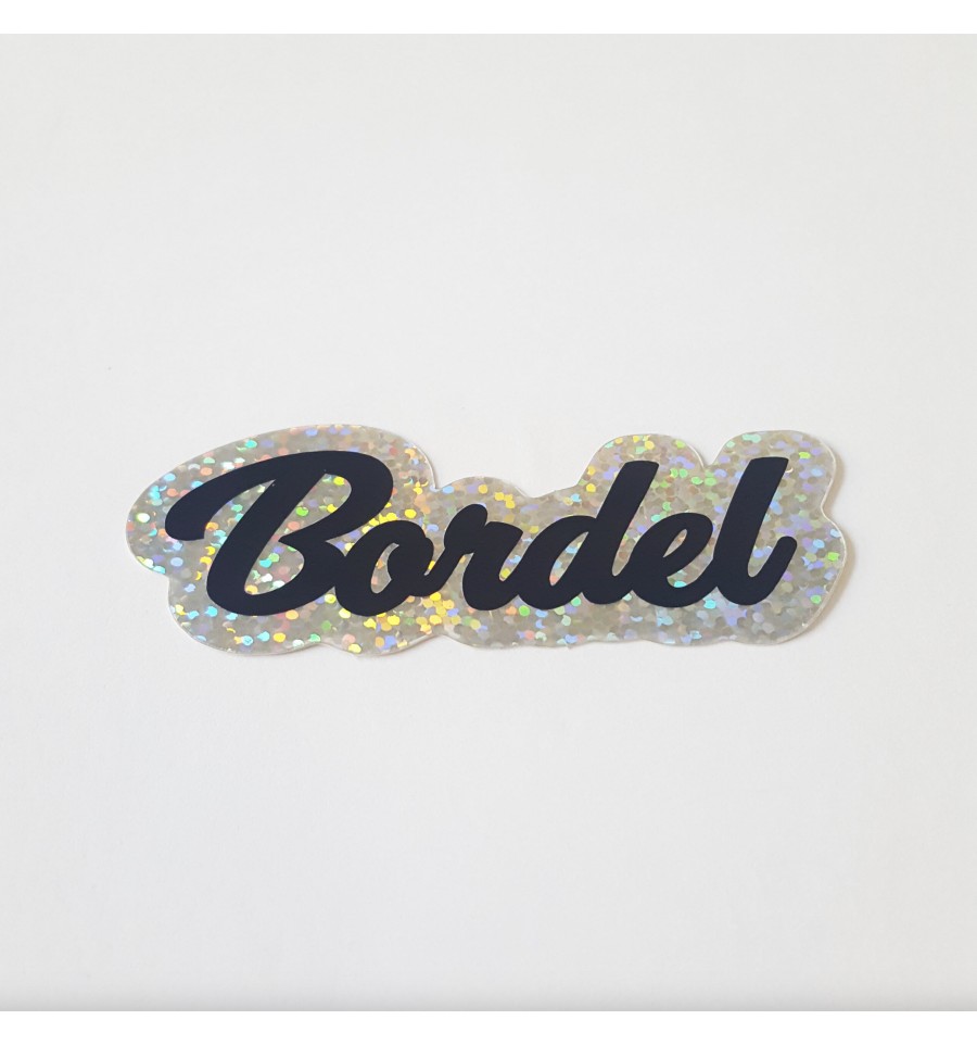 On adore le coté holographique brillant et la typo noire qui fait bien ressortir le Bordel !