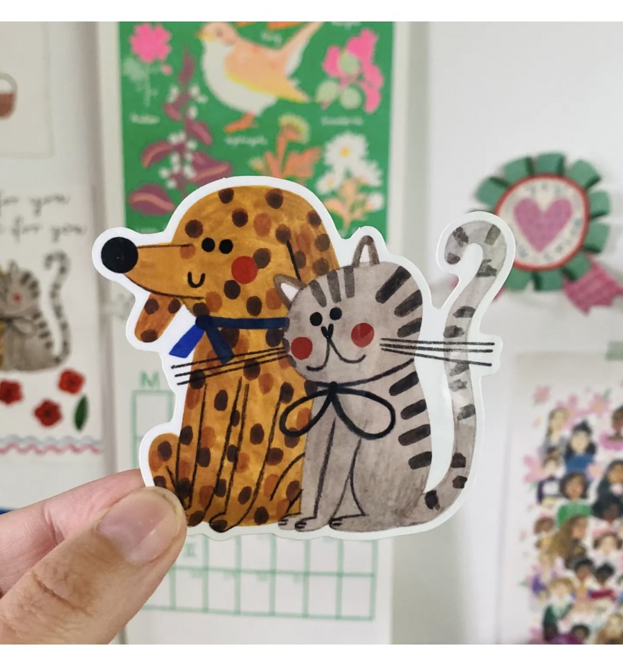 Amoureux des autocollants, n'allez pas plus loin. Adorablement mignon ce duo chien et chat saura trouver une place de choix auprès de vous.