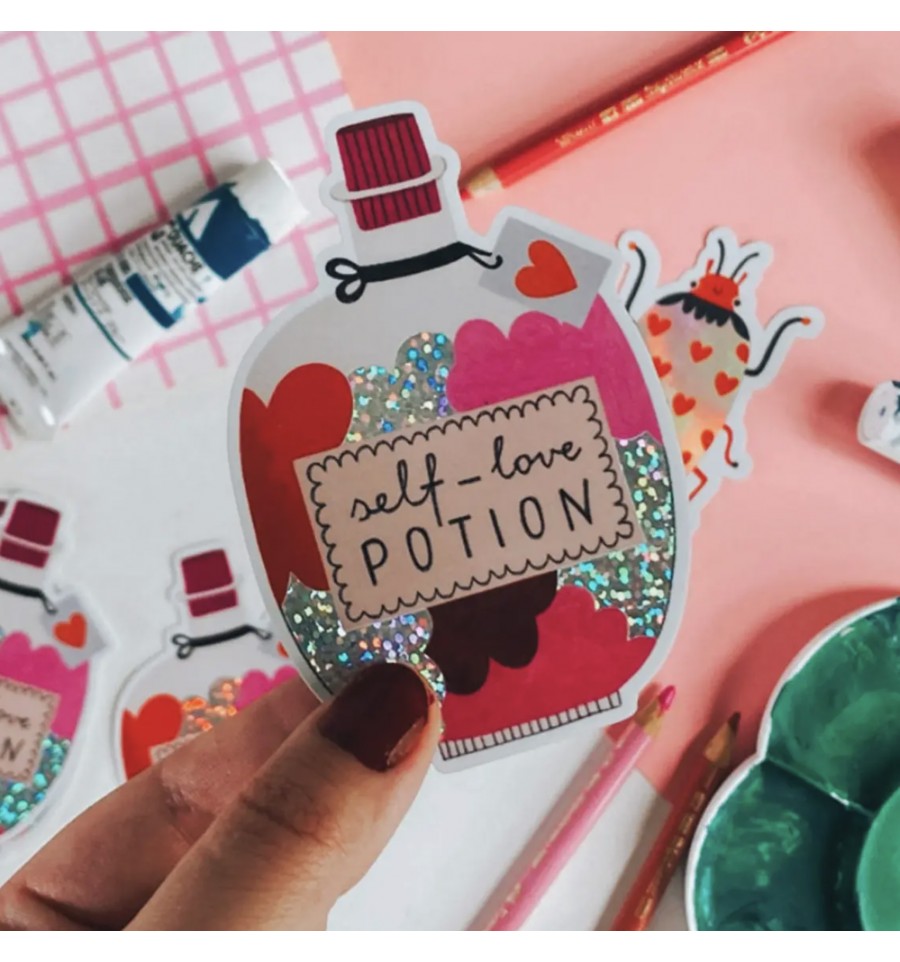 Amoureux des autocollants, n'allez pas plus loin. Voici une potion d'amour pour prendre soin de soi, une "sel-love potion"