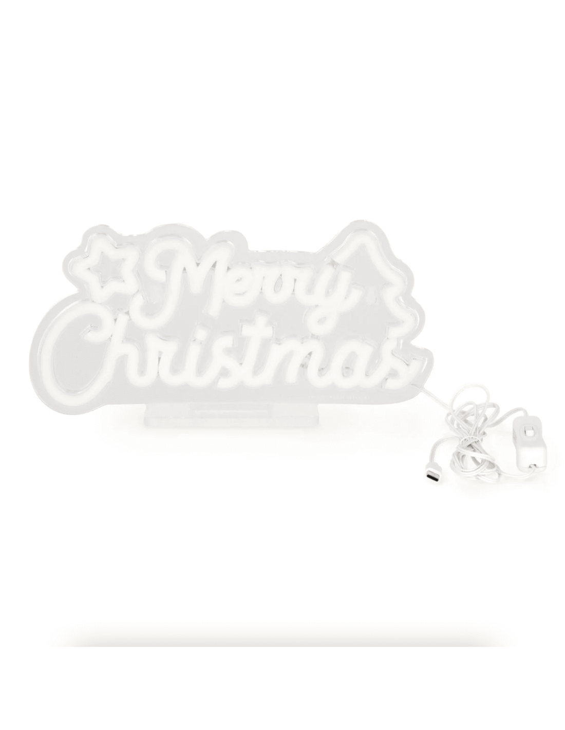 Faites entrer la lumière et l'ambiance de Noël chez vous grâce à cette lampe LED en forme de "Merry Xmas".