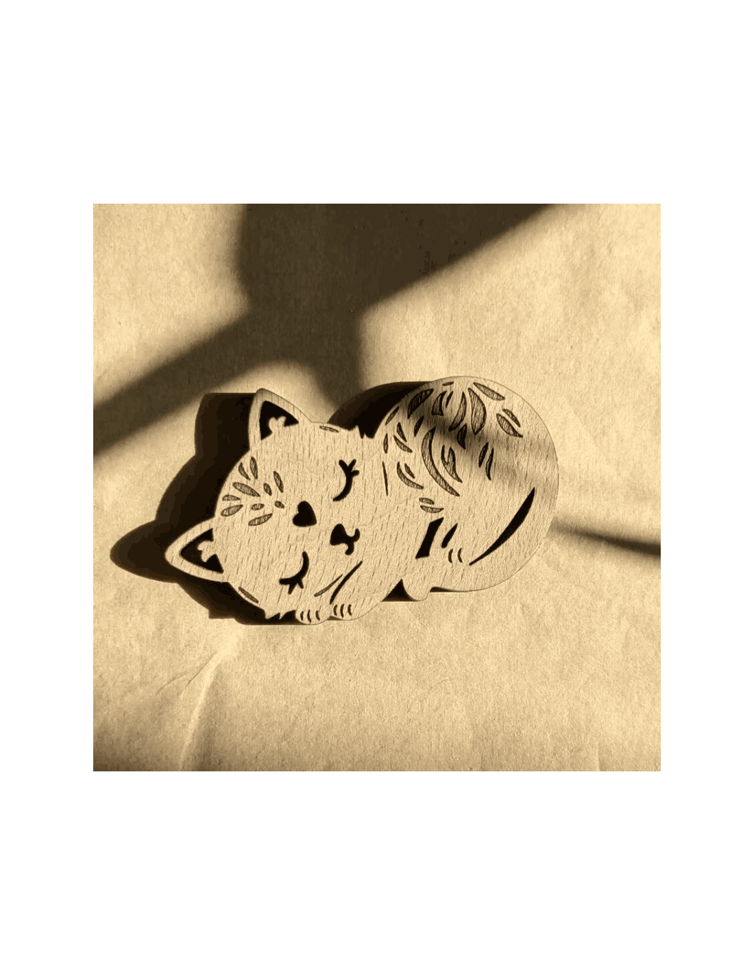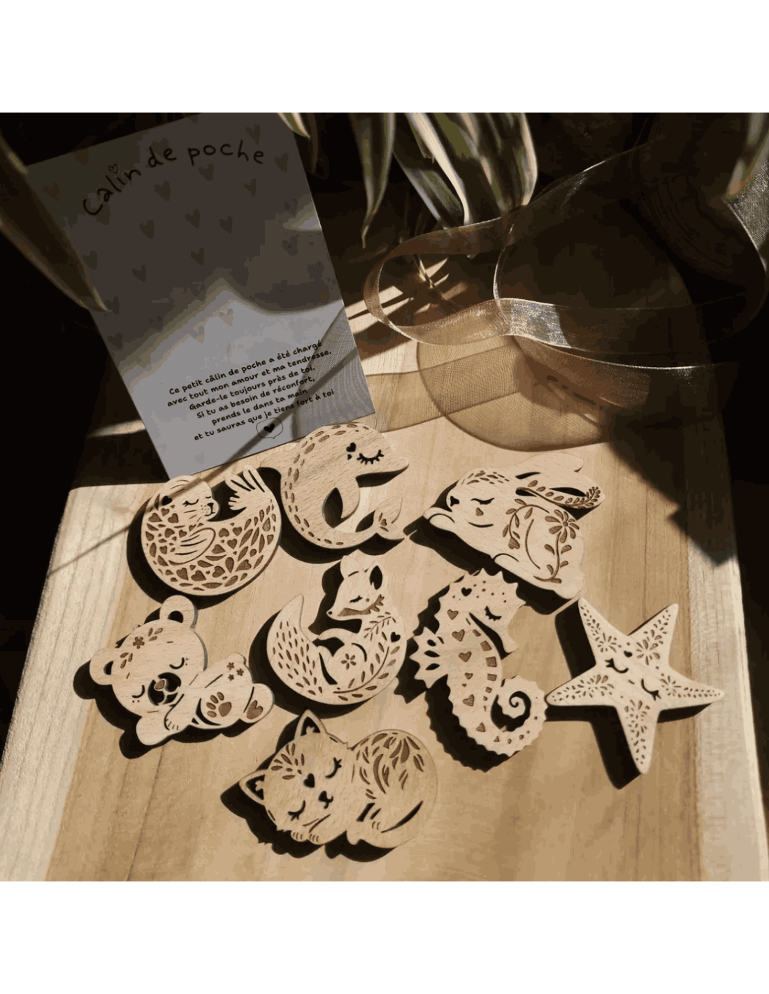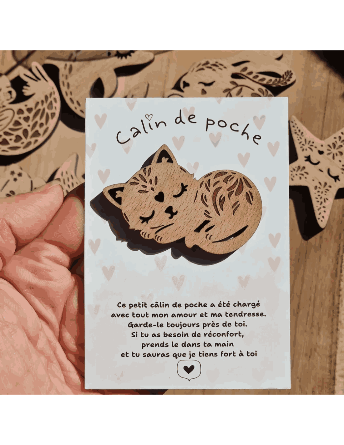 Un petit chat en bois à glisser dans la poche pour emporter un peu de douceur partout avec soi.