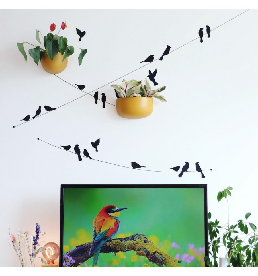 Une fois le fil de coton tendu, comme un câble électrique, disposer les oiseaux dessus au gré de vos envies.