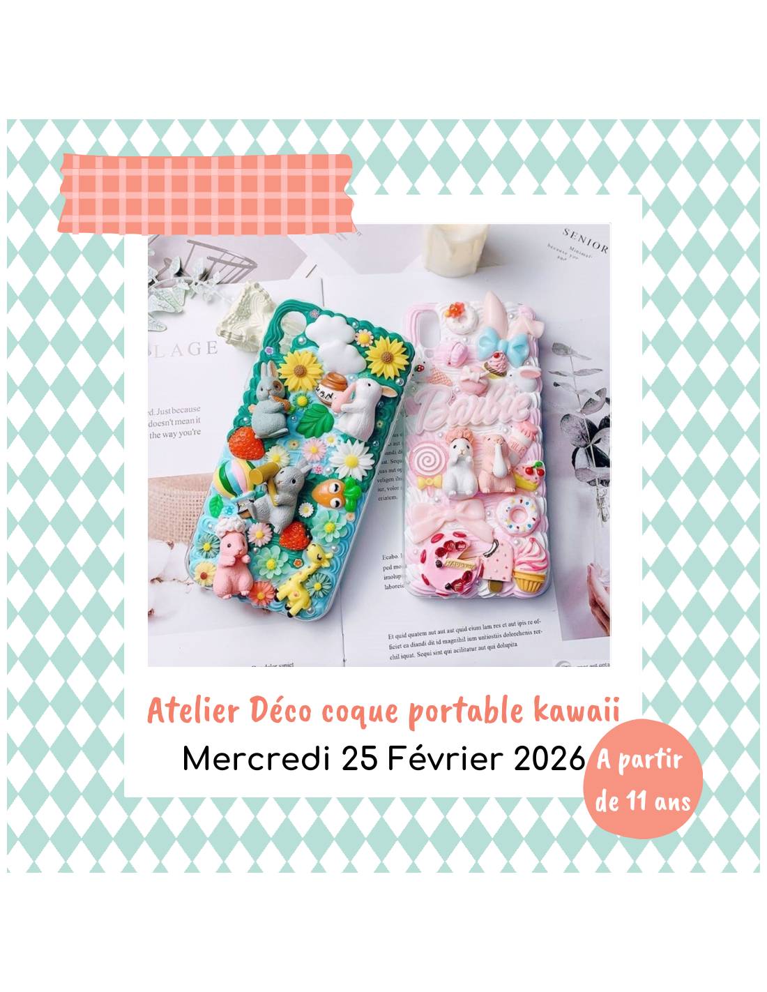 Lors de cet atelier, les jeunes ados (et même les adultes) pourront décorer leur propre coque dans un style kawaii en utilisant une variété de matériaux créatifs. Un atelier fun et ultra tendance pour décorer sa coque de téléphone dans un style kawaii ! Déco 3D, colle creamy… tout est fourni sauf la coque.