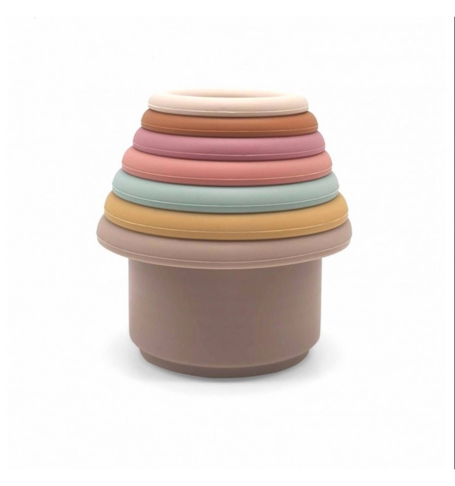 Ces 7 gobelets en silicone s'empilent ou s'emboitent les uns dans les autres.