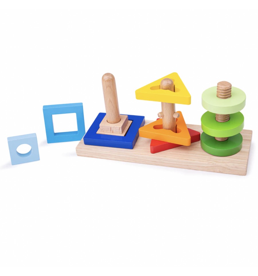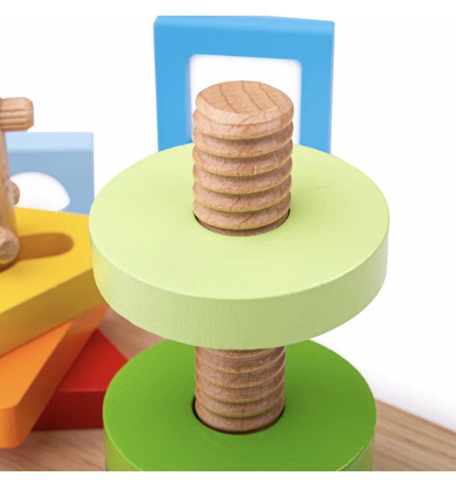 Votre enfant devra se concentrer et travailler sa patience pour tourner, visser et dévisser les formes en bois.