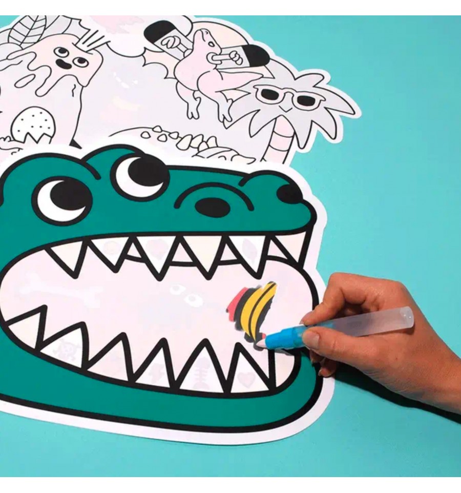 A l'aide du stylo à réservoir d'eau fourni, vos enfants pourront voir apparaitre comme par magie, des illustrations funs et colorées. Ainsi, les dinosaures s'invitent à votre table.