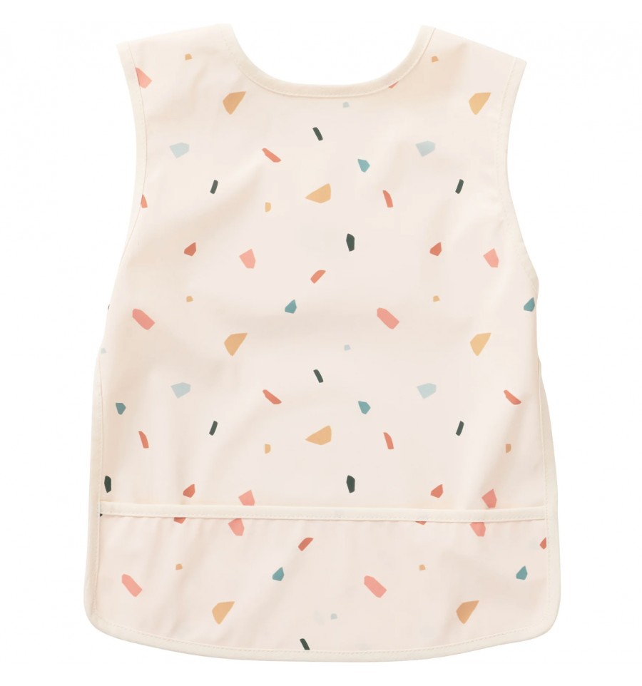 Ce bavoir imperméable sera votre allié pour protéger les vêtements au moment des repas. Il est doté d'une petite poche qui récupère les aliments tombés : trop pratique !!