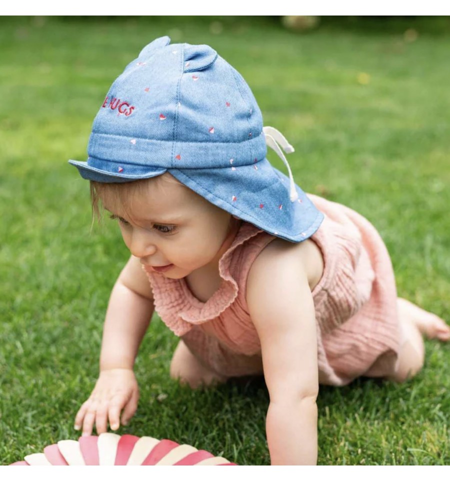 Couleur jean denim, il s'accordera à toutes les adorables tenues de votre bout'd'chou ! On craque pour les détails de petits coeurs qui le recouvre.