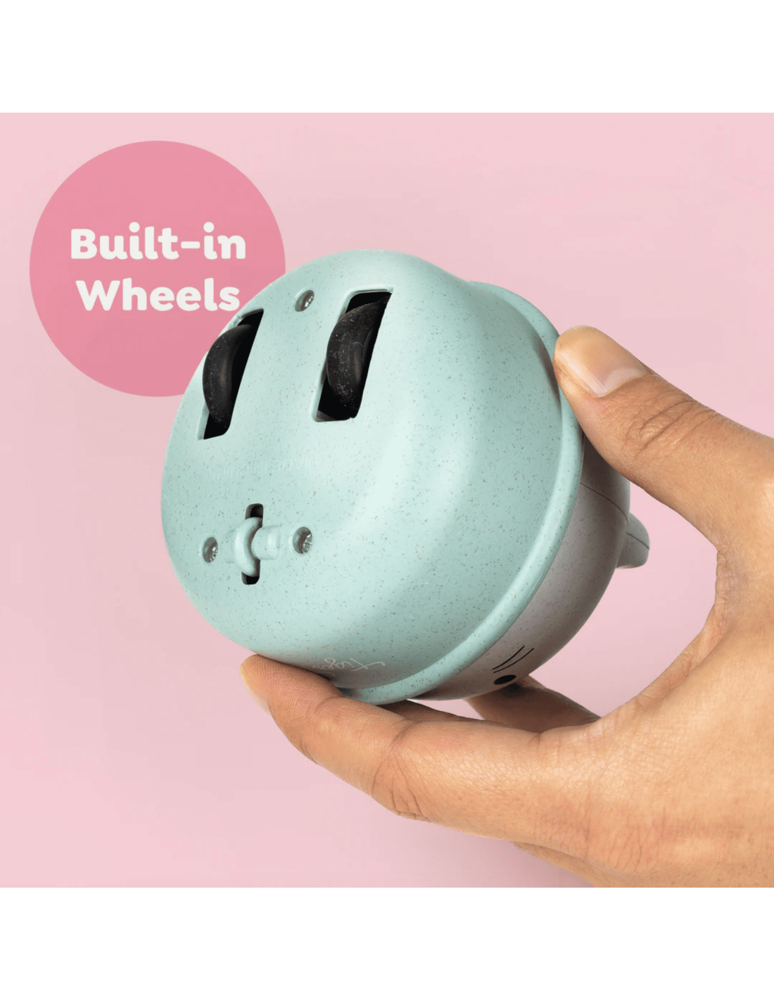 Retirez ce socle et il suffit alors d'appuyer sur sa tête pour le voir rouler à toute allure sur ses roues intégrées.